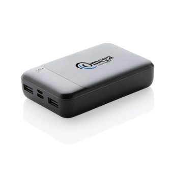 - Powerbank 10.000 mAh dont le boîtier est fabriqué en plastique ABS recyclé certifié RCS. RCS (Recycled Claim Standard) est une norme permettant de vérifier le contenu recyclé d'un produit tout au long de la chaîne d'approvisionnement. Lorsqu'il est entièrement chargé, le powerbank vous fournit suffisamment d'énergie pour recharger votre téléphone portable jusqu'à cinq fois. Le powerbank contient une batterie au lithium-polymère haute densité de qualité A de 10 000 mAh. Les indicateurs d'alimentation indiquent le niveau d'énergie restant pour que vous sachiez toujours quand recharger. Entrée Micro USB 5V/2A ; Entrée Type-C 5V/2A ; Sortie USB 5V/2A ; Article et accessoires sans PVC. Comprend un câble de chargement en TPE recyclé sans PVC