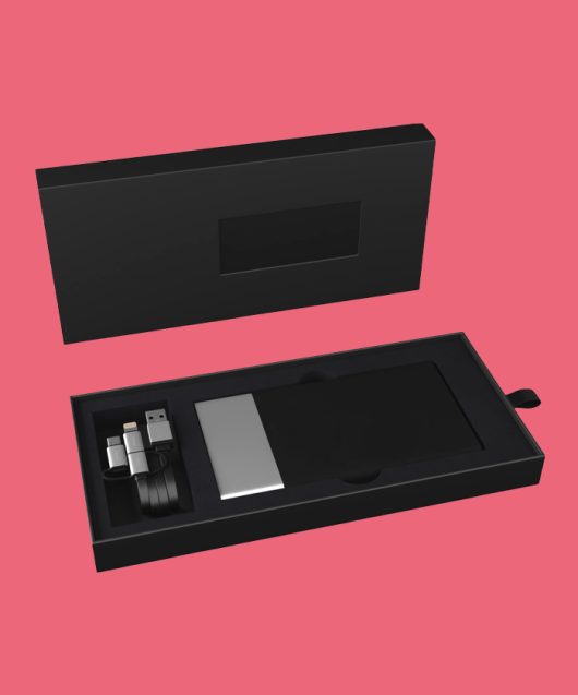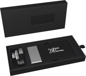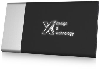 - Batterie de secours 5 000 mAh avec logo lumineux et câble de charge rapide 3-en-1 en plastique RPET (Type C, Android, iPhone), avec couleur assortie à la batterie de secours. L'appareil s'allume au toucher grâce à sa fonction « shake », et le logo peut rester allumé jusqu'à 20 jours sans devoir recharger la batterie. Capacité : 5000 mAh Entrée CC : 5V/2 A micro-USB. Sortie CC double : Charge rapide 5 V/2.1 A et 5 V/1 A. Livrée avec une boîte cadeau en papier recyclé. Gomme, Aluminium