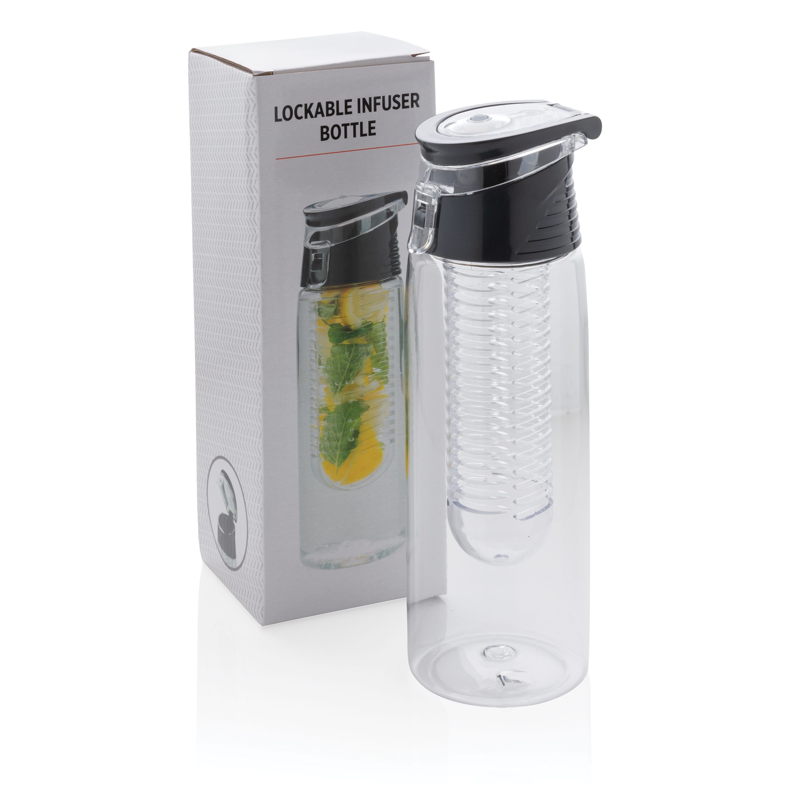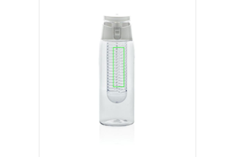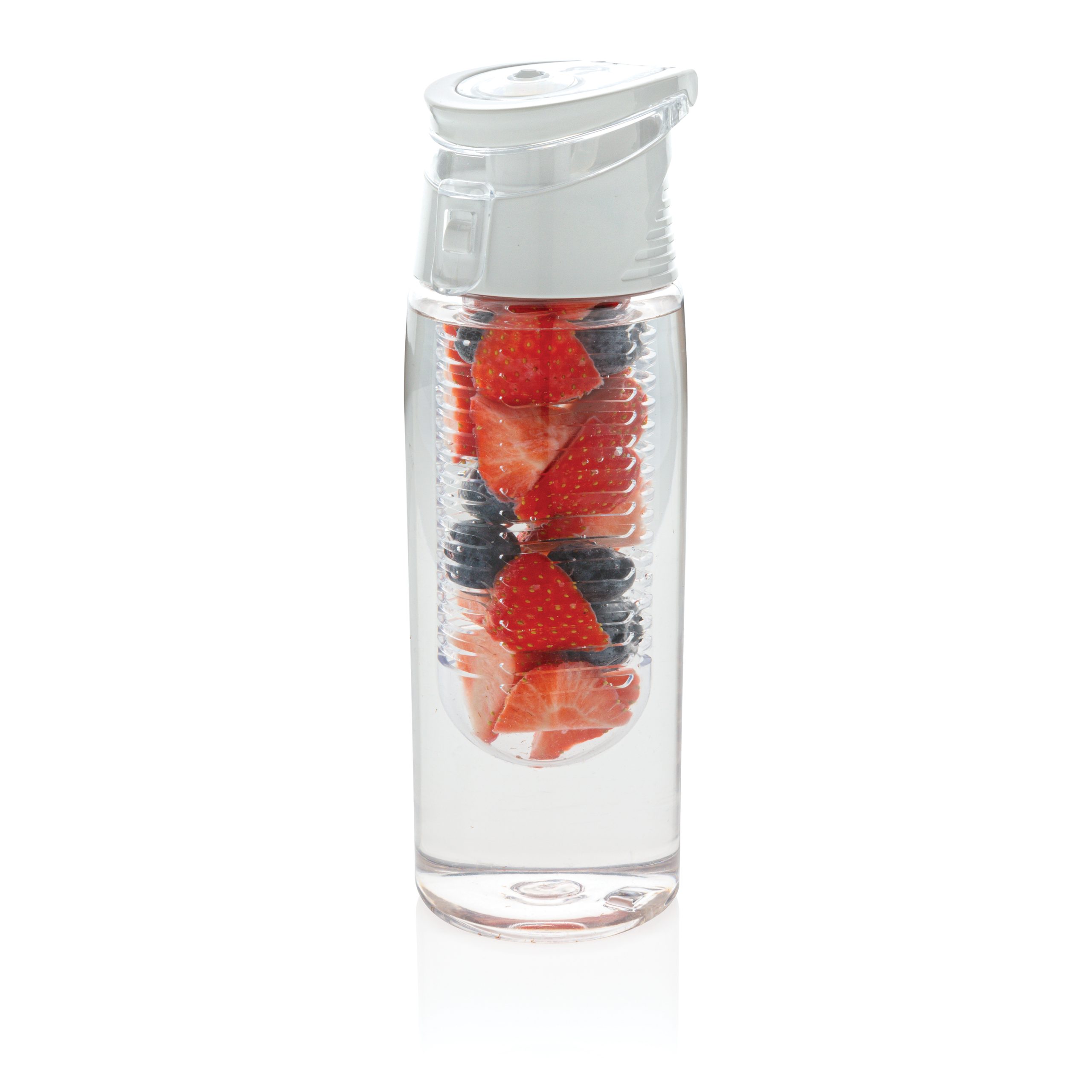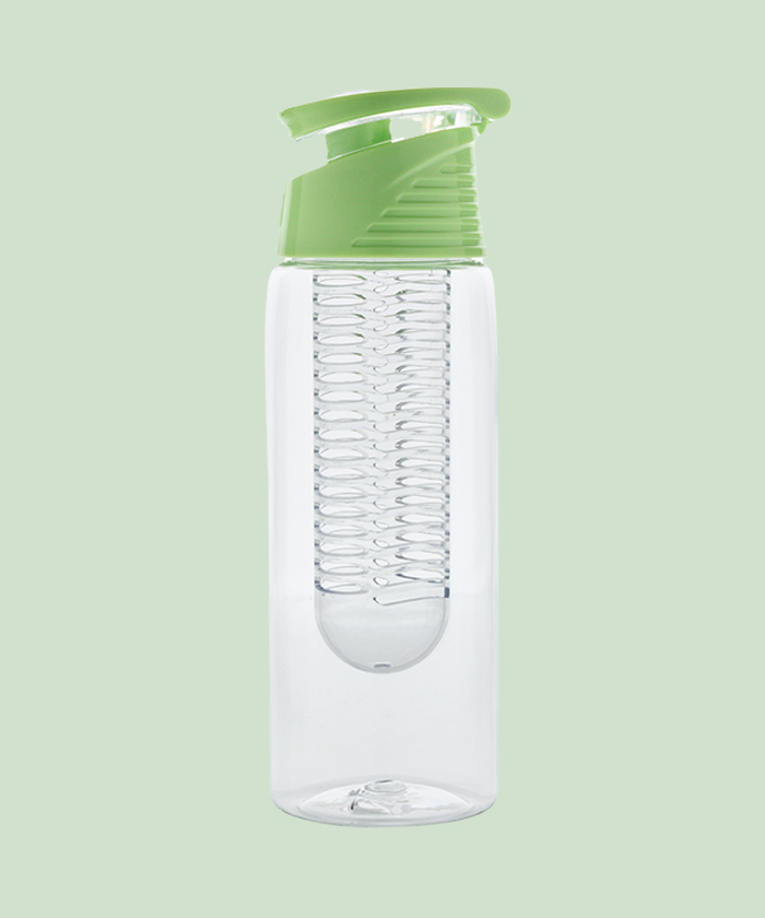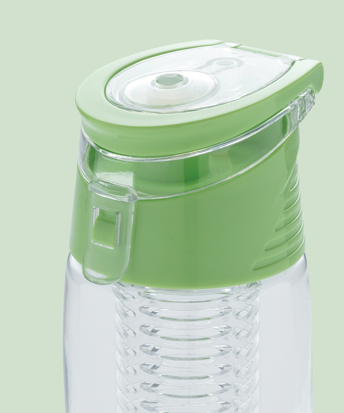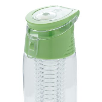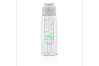 Bouteille en Tritan 700ml avec compartiment à infusion. Aromatisez et vitaminez votre eau en ajoutant des fruits frais dans le compartiment à infusion. Le couvercle en ABS est verrouillable pour vous permettre d’emmener votre eau partout avec vous