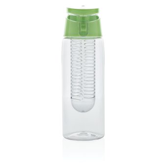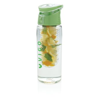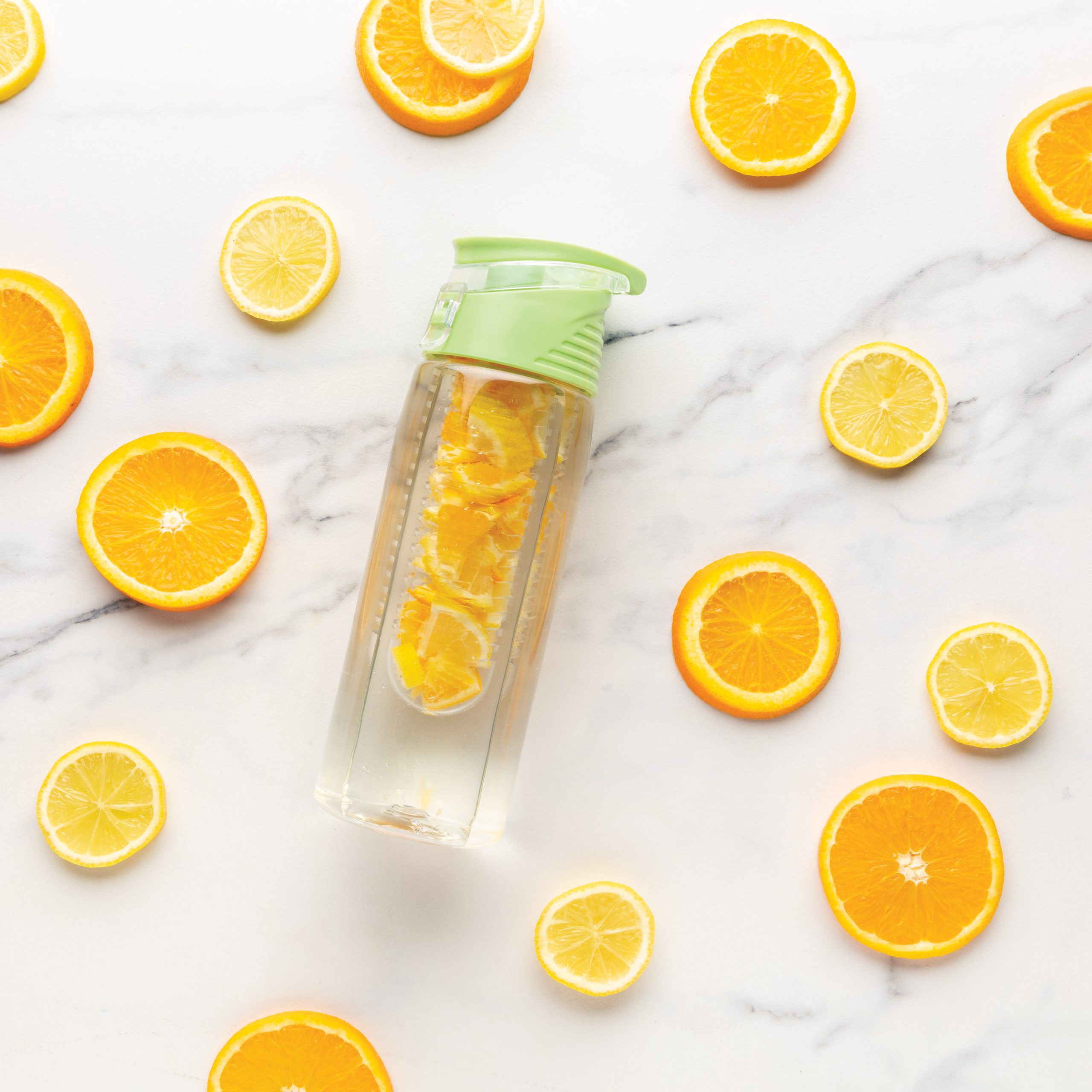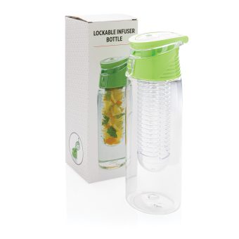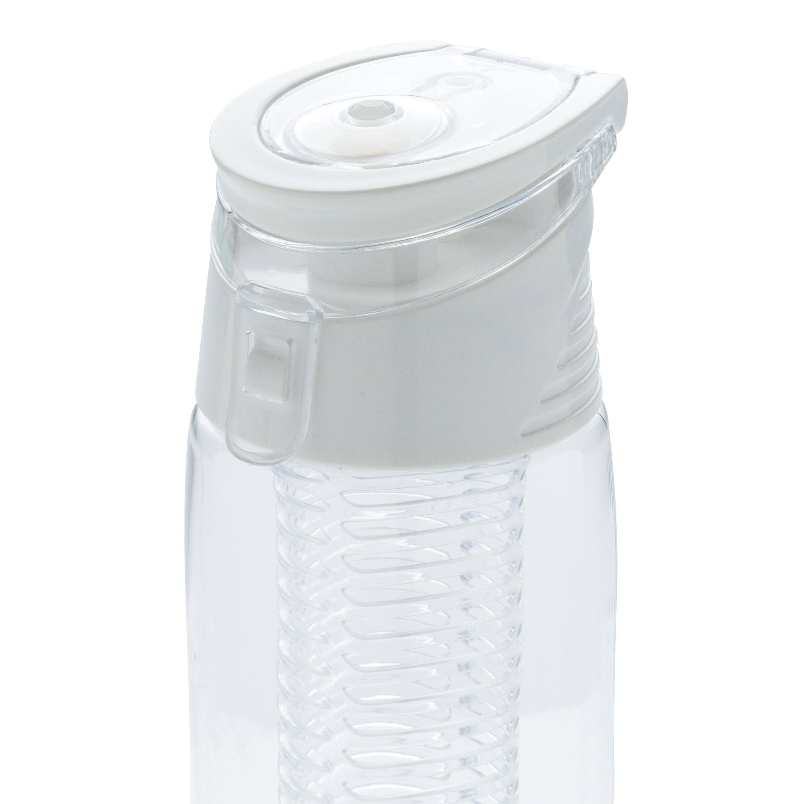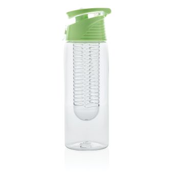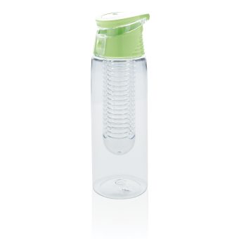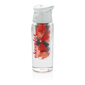Bouteille en Tritan 700ml avec compartiment à infusion. Aromatisez et vitaminez votre eau en ajoutant des fruits frais dans le compartiment à infusion. Le couvercle en ABS est verrouillable pour vous permettre d’emmener votre eau partout avec vous