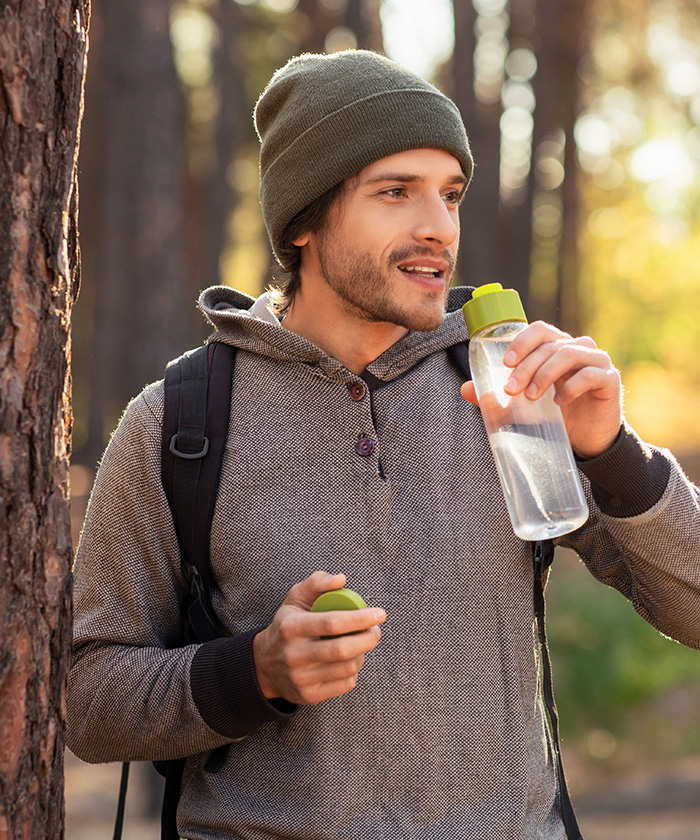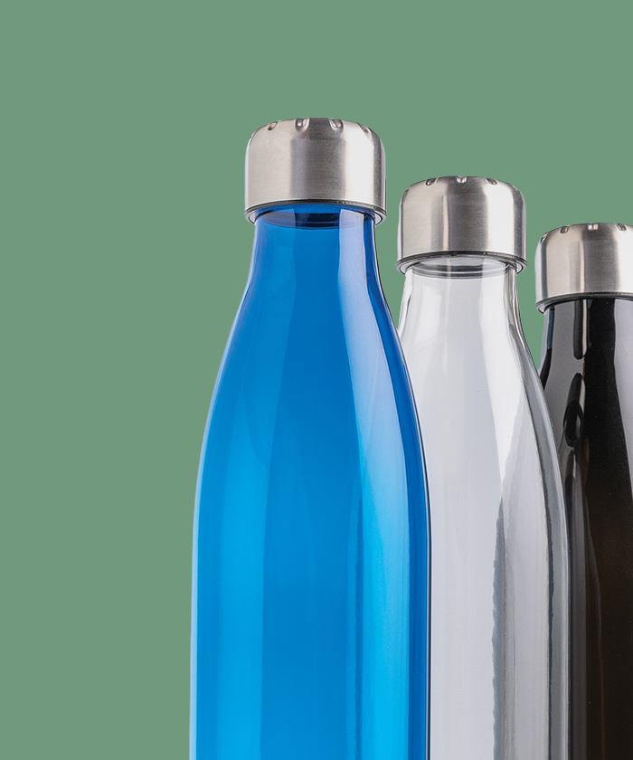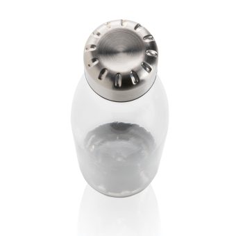 - Bouteille étanche avec couvercle et fond en acier inoxydable. Corps transparent en PETG (polyéthylène téréphtalate glycol). Diamètre idéal pour la majorité des porte-gobelets. Capacité 500 ml. Sans BPA