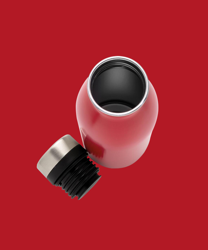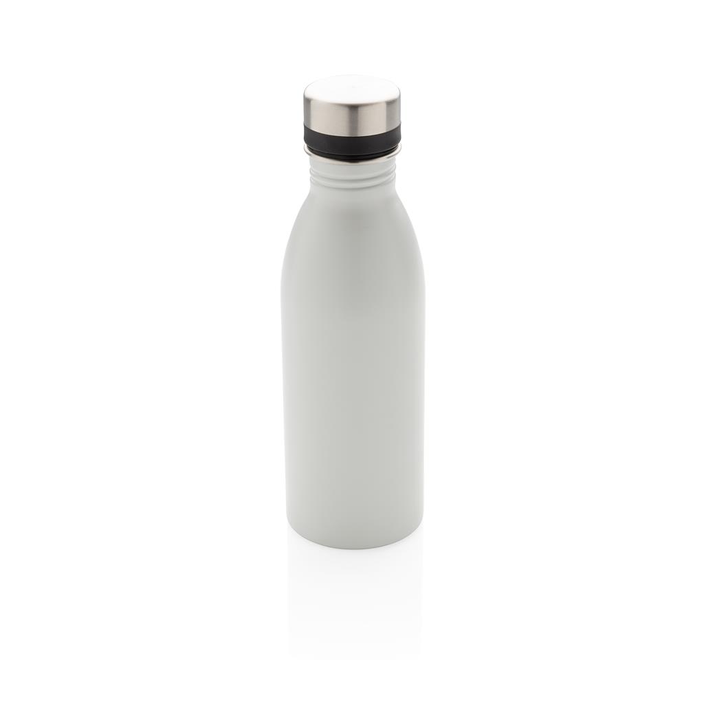 Bouteille étanche 500ml en acier inoxydable 18/8, légère et de taille parfaite pour un usage quotidien. Utilisation pour de l'eau froide uniquement. Existe en plusieurs coloris. La couleur blanc cassé est en PMS Cool Gray 1.