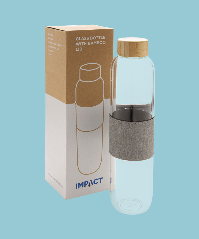 - N'achetez plus de bouteilles d'eau en plastique mais réutilisez votre propre bouteille de la collection Impact. En utilisant du verre durable et des matériaux en acier inoxydable, vous améliorez la réutilisation des produits par rapport aux produits à usage unique. 2 % des recettes de chaque produit Impact vendu seront reversés à Water.org. Bouteille 750ml en verre borosilicate, résistant aux grands changements thermiques, couvercle en bambou. Sans BPA.