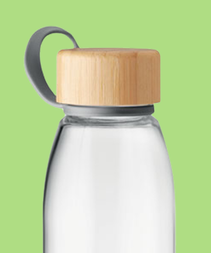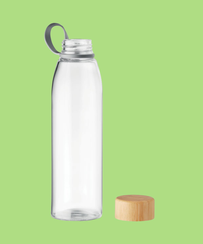 Bouteille en verre borosilicate avec un couvercle en bambou et un support en TPU