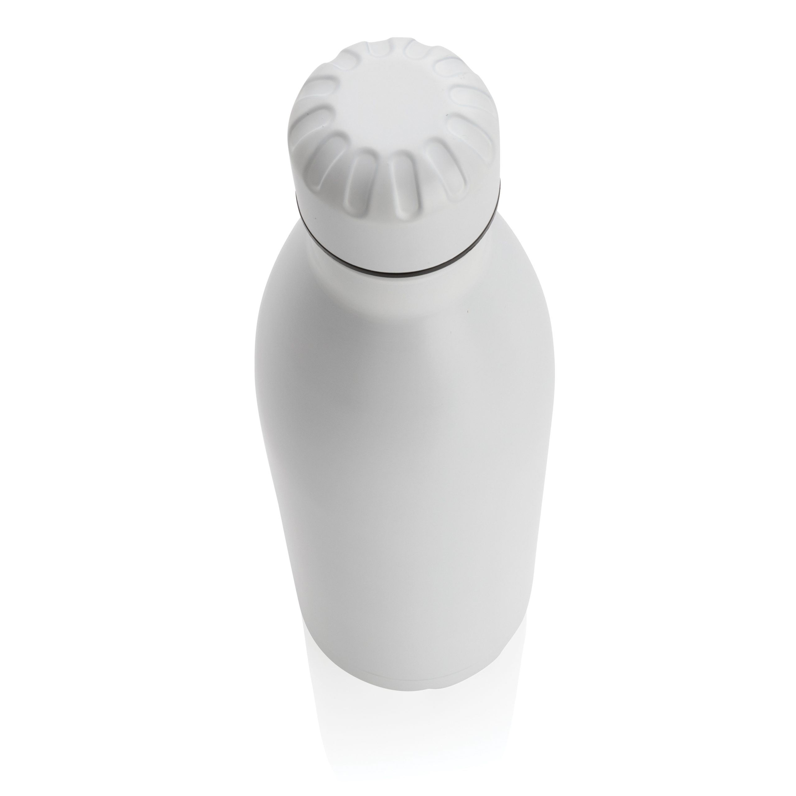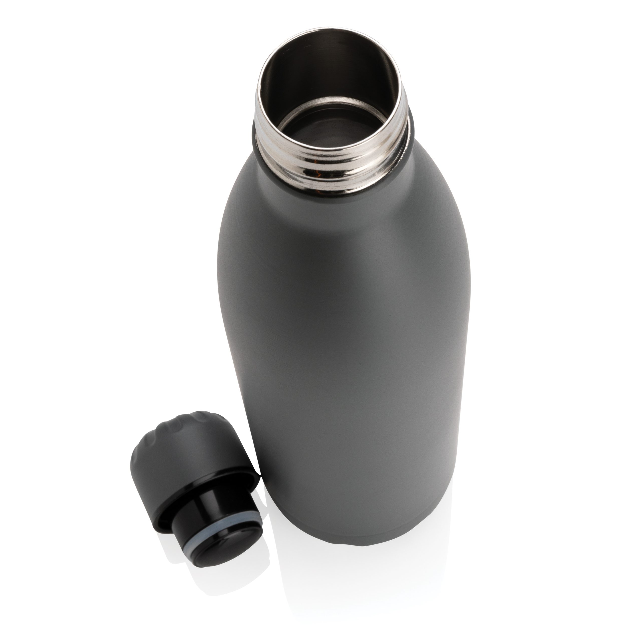- Bouteille 750ml en acier inoxydable double paroi de couleur unie. La bouteille garde les boissons froides au frais jusqu'à 15 heures et les boissons chaudes au chaud jusqu'à 5 heures. Avec une base qui s'adapte à la plupart des porte-gobelets, cette bouteille d'eau au look élégant vous permettra de vous hydrater lors de vos déplacements, où que vous soyez