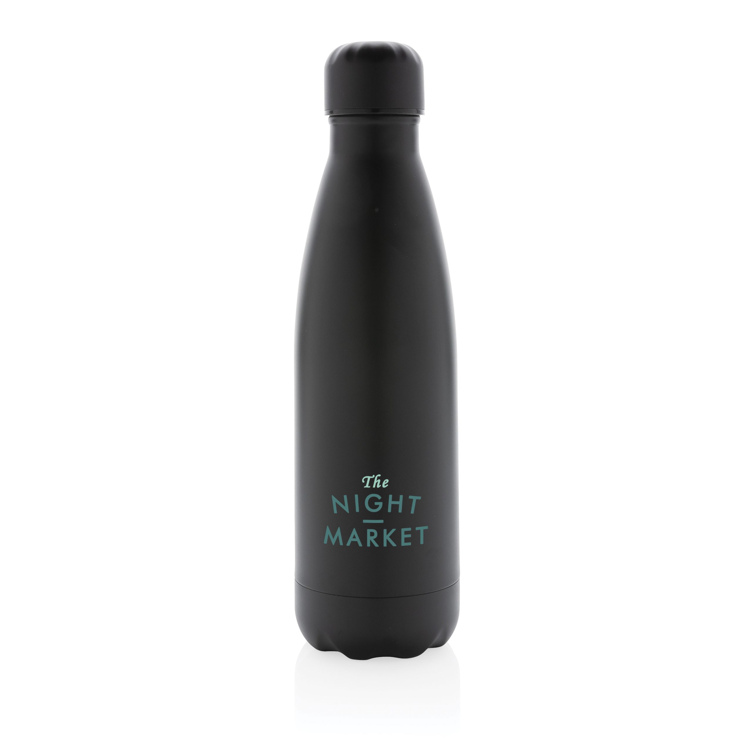 Bouteille 500ml en acier inoxydable avec vide d’air. Garde le chaud jusqu’à 5h et le froid jusqu’à 15h. Capacité 500ml