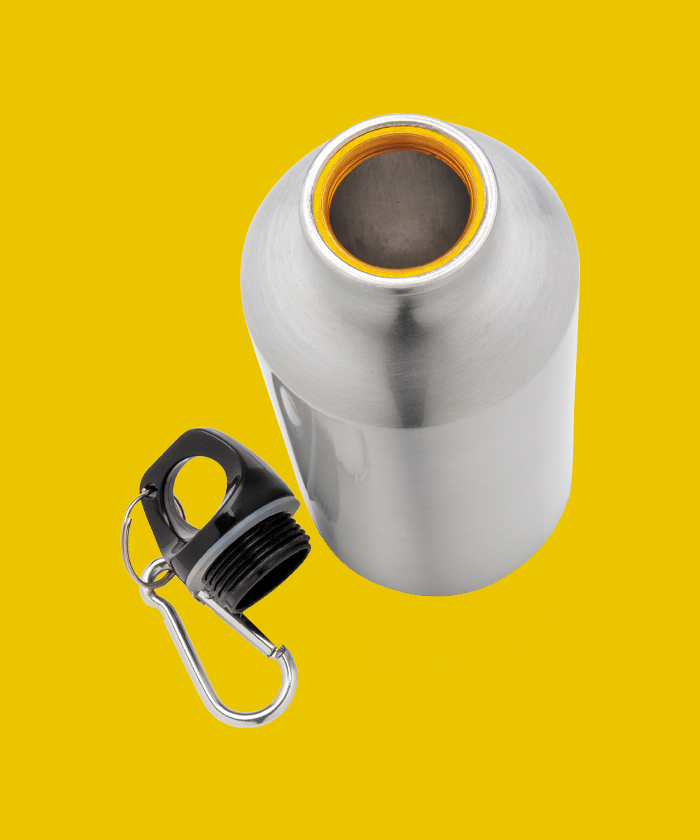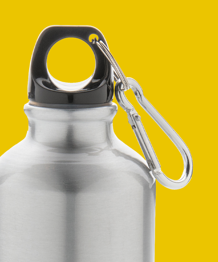 Bouteille en aluminium de 400 ml avec mousqueton pour l'emmener partout. Idéal pour un usage quotidien ou pour le sport. Eau froide uniquement. Sans BPA