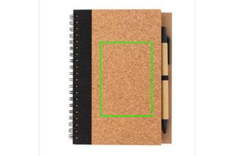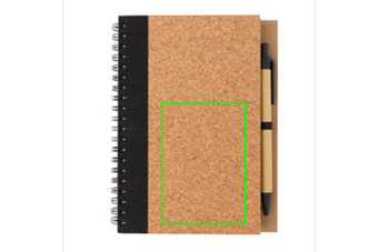 - Carnet à spirales avec couverture en liège et stylo à barillet kraft de couleur assortie. 70 feuilles/140 pages de 70g/m² (papier crème) avec lignes noires. Encre bleue Dokumental® de fabrication allemande pour +/- 600m d’écriture et bille en carbure de tungstène assurant une écriture régulière