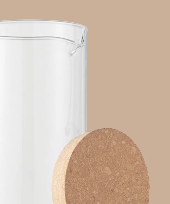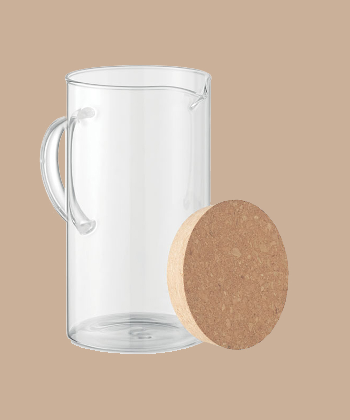 Carafe à eau ou à jus en verre borosilicate avec couvercle en liège