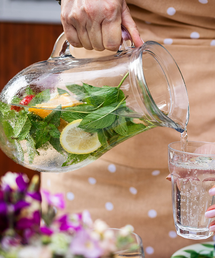 Présentez des jus de fruits frais, de la limonade, de l'eau ou d'autres boissons dans cette carafe en verre