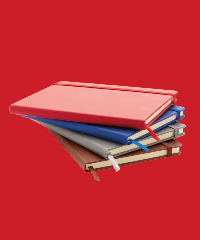Carnet de notes avec 80 feuilles/160 pages de 80g/m² (papier crème), avec lignes noires et couverture en PU. Idéal pour un marquage en embossage