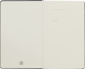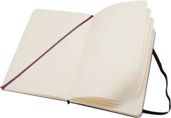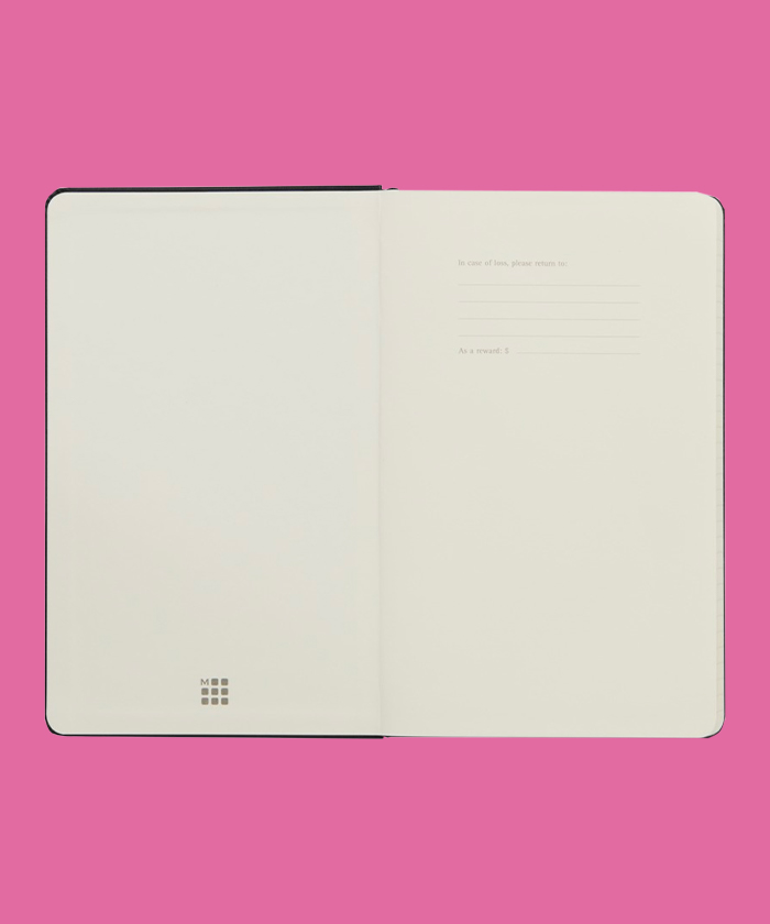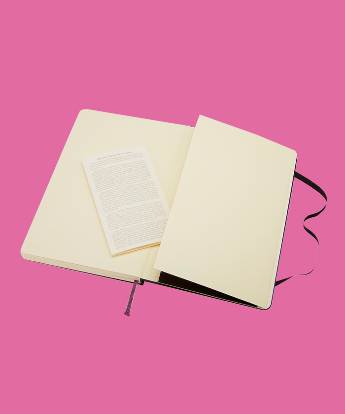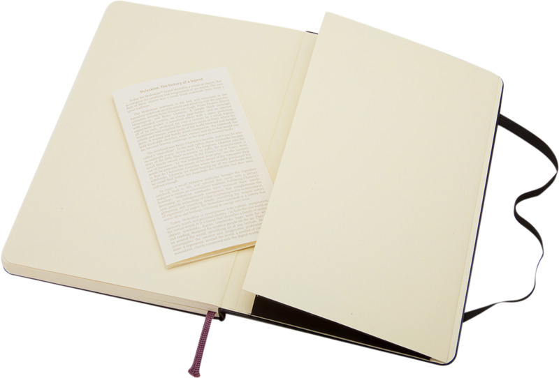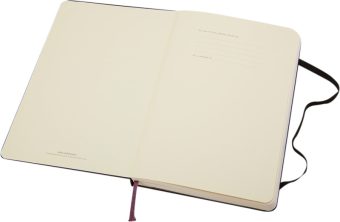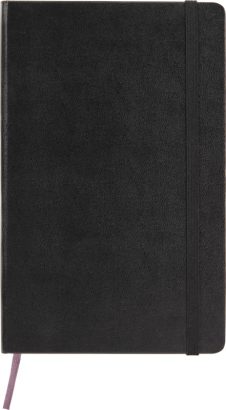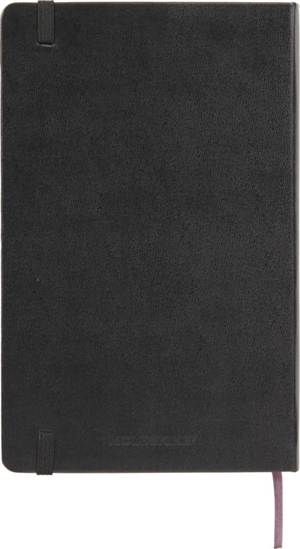 Le carnet possède les coins arrondis, la fermeture élastique et le ruban marque-page emblématiques.
