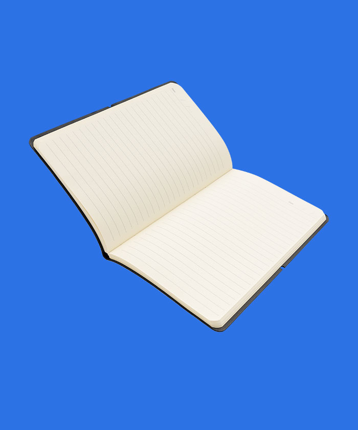- Carnet de note A5 avec couverture en soft PU avec 96 feuilles/ 192 pages de 80 g/m2 ( papier crème) et lignées. Fermeture horizontale, élastique noir. Idéal pour une utilisation nomade
