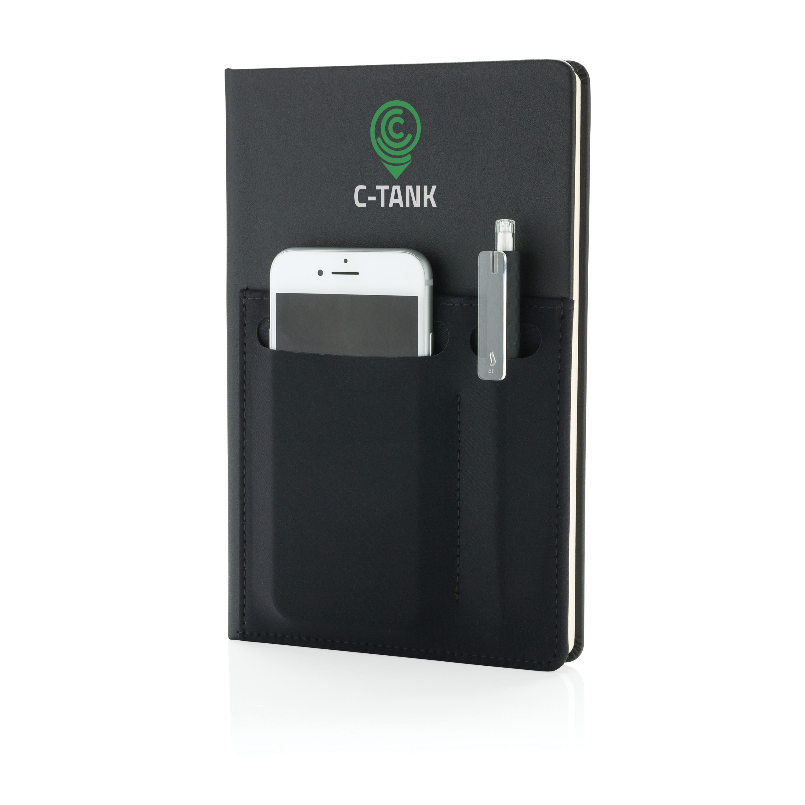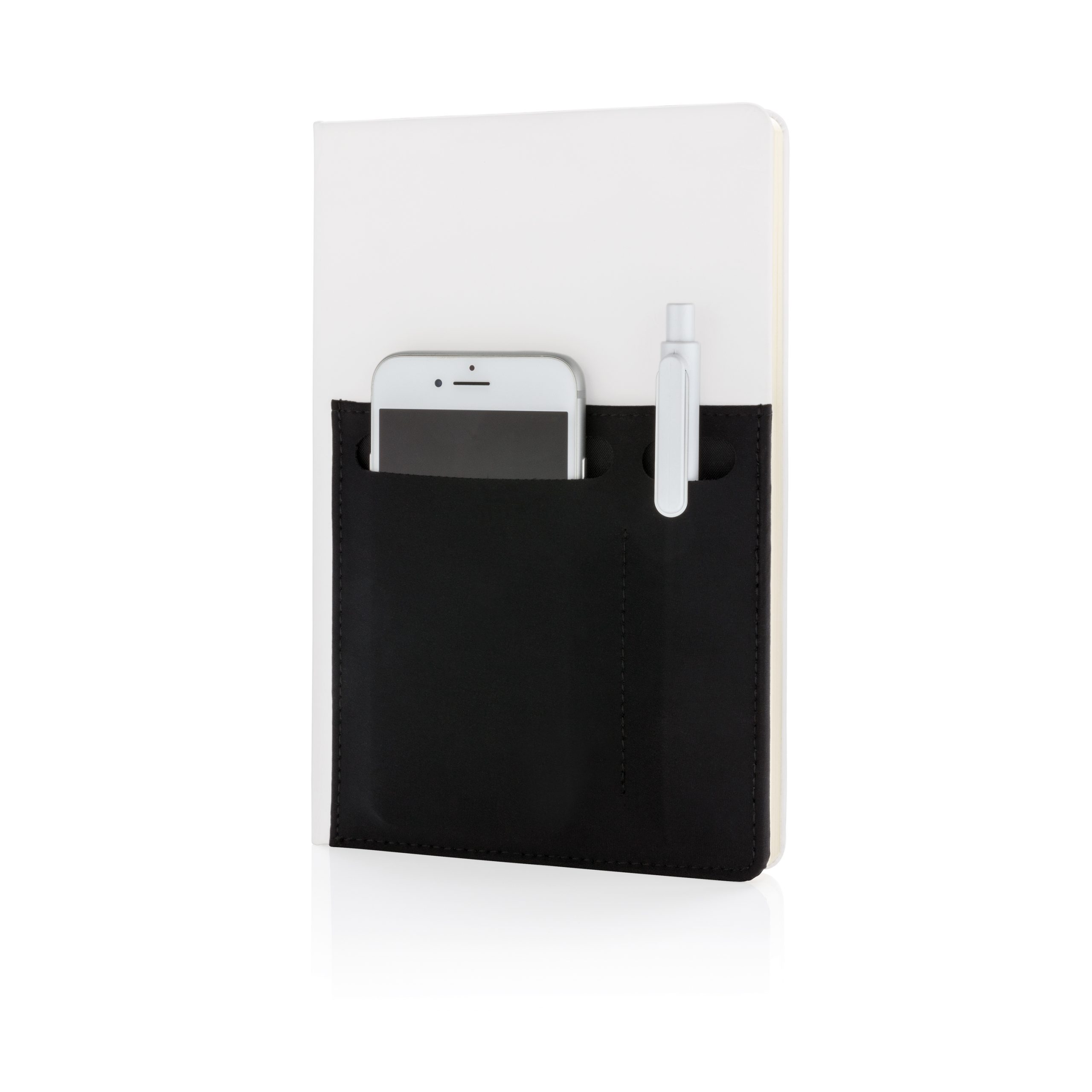 Carnet de notes A5 avec pochette pour téléphone (largeur jusqu’à 8cm max) et pour stylo