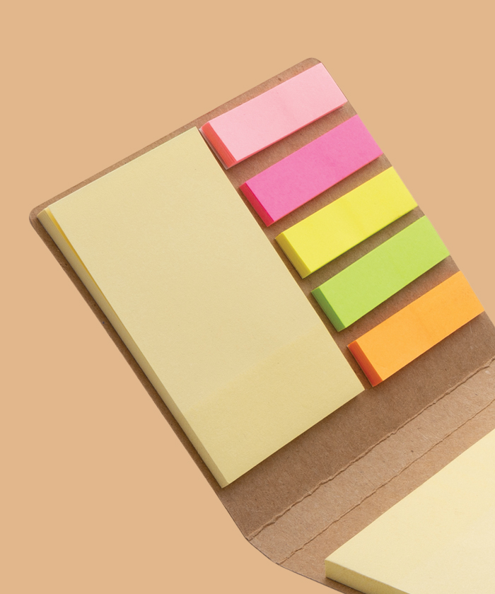 - Ensemble petit et pratique avec couverture en kraft (300 g/m²), un bloc de notes adhésives de 50 feuilles, 4 petits blocs de notes adhésives colorées et 1 bloc de notes adhésives moyennes de 30 feuilles chacun