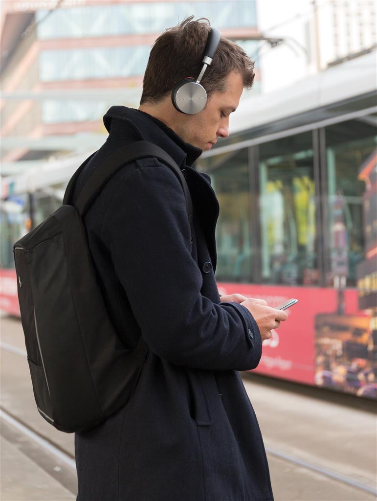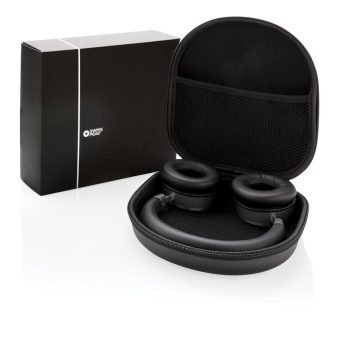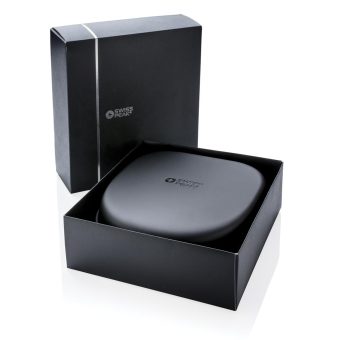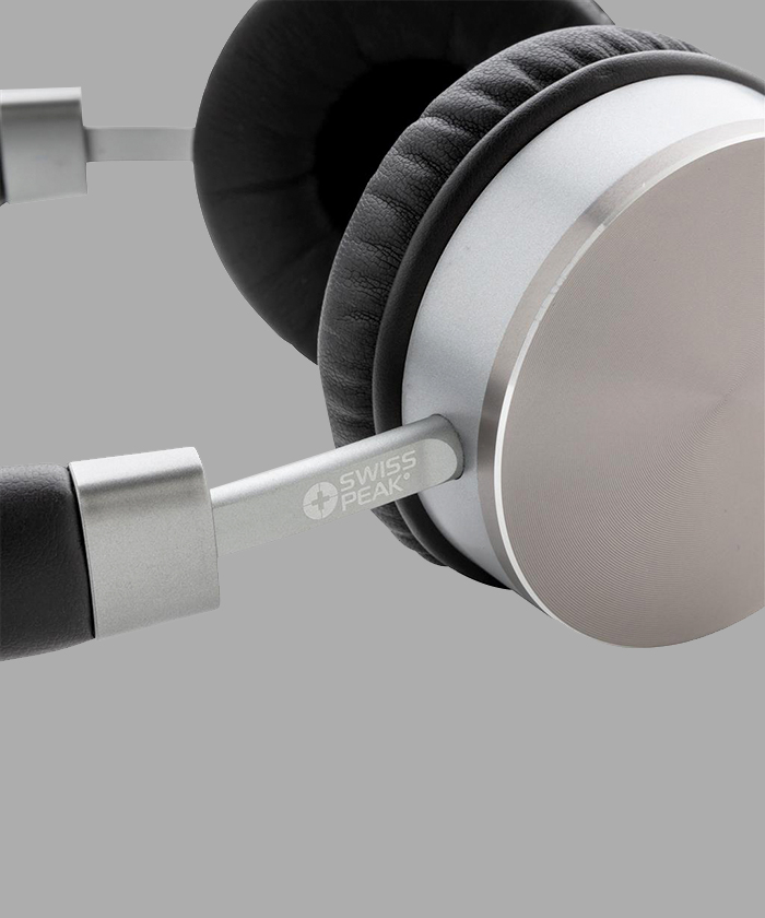 Casque stéréo 3W sans fil en aluminium avec écouteurs en PU et sensibilité de 105dB pour une expérience sonore parfaite. Batterie 350mAh (± 8 heures d’autonomie), connexion possible jusqu’à 10 mètres. Le casque peut être plié à plat pour le ranger dans la pochette Swiss Peak fournie. Câble AUX inclus et micro intégré