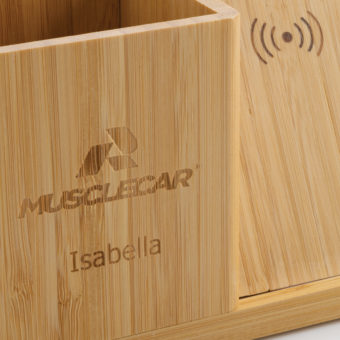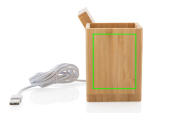 - Chargeur rapide sans fil 10W avec porte-stylo fabriqué en ABS recyclé certifié RCS (Recycled Claim Standard). Contenu recyclé total : 6% sur la base du poids total de l'article (base en bambou incluse). L'extérieur de l'organiseur est entièrement fabriqué à partir de bambou FSC 100. Câble de chargement de 120 cm de type C fabriqué à partir de TPE recyclé certifié RCS inclus. Emballé dans une boîte en kraft FSC mix. Entrée Type-C 5V/2A ; 9V/1.67A. Sortie sans fil 5V/1A;9V/1.1A (10W). Modèle déposé®.