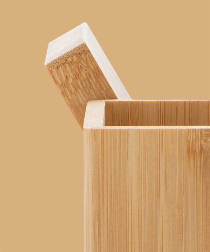 Contenu recyclé total : 6% sur la base du poids total de l'article (base en bambou incluse). L'extérieur de l'organiseur est entièrement fabriqué à partir de bambou FSC 100