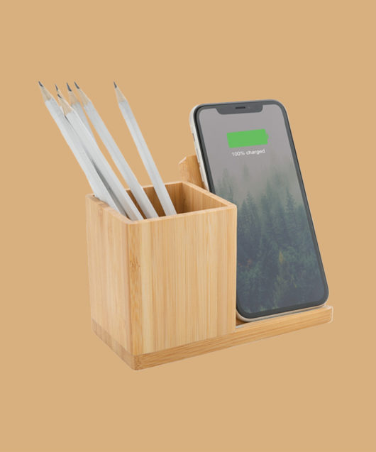 Chargeur rapide sans fil 10W avec porte-stylo fabriqué en ABS recyclé certifié RCS