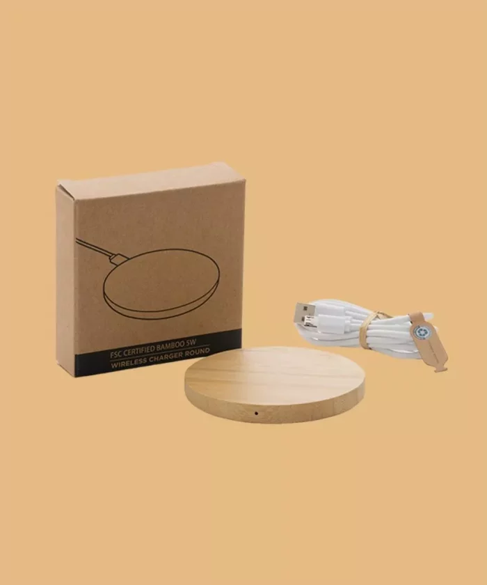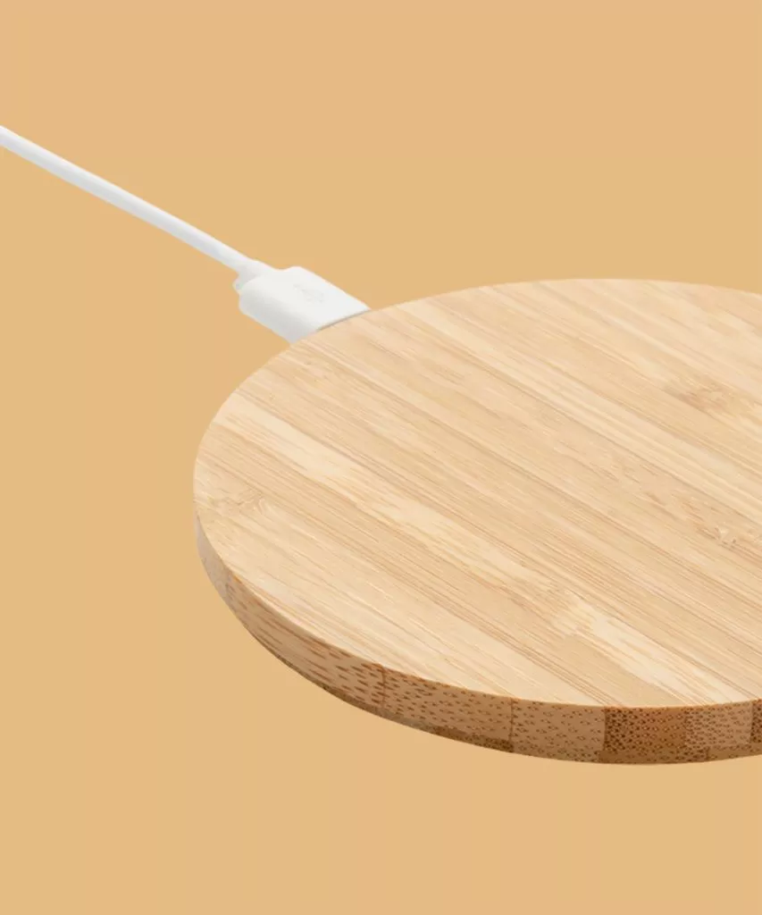 - Chargeur sans fil de 5W en bambou certifié FSC® 100%. Compatible avec tous les appareils compatibles QI comme Android dernière génération, Iphone 8 et plus. Entrée: 5V/2A. Induction : 5V/1A - 5W. Article et accessoires 100% sans PVC. Emballé dans une boite FSC®Mix. Câble micro USB en TPE recyclé RCS de 150 cm inclus