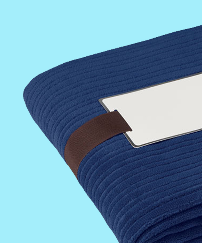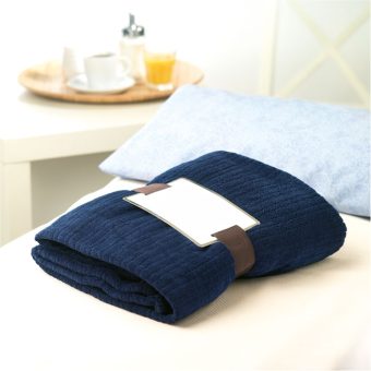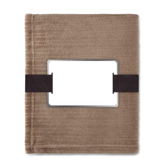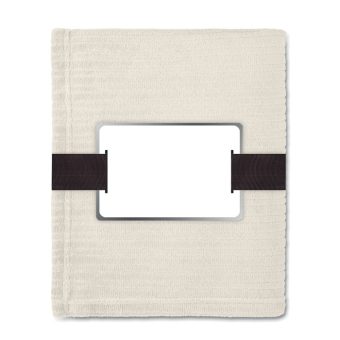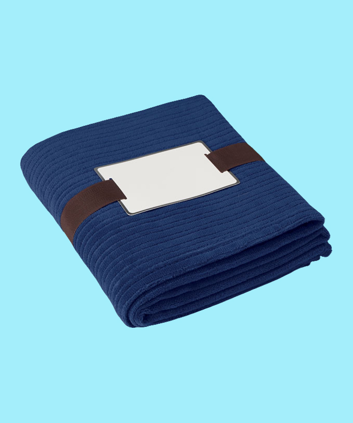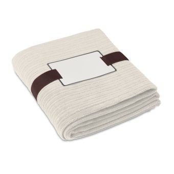 - Couverture souple en polaire de 240 gr/m² enveloppée dans un ruban et carte imprimable
