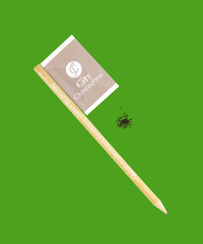 Crayon fabriqué en France avec certification FSC. Vous semez les graines et récoltez le fruit de votre travail et gardez l’utilité du crayon et donc sa communication!