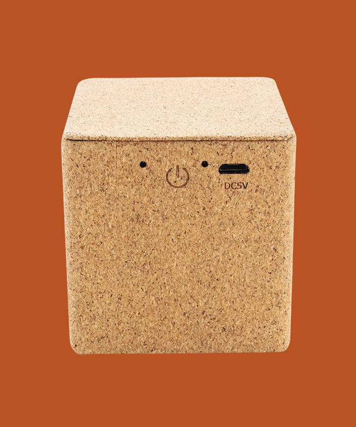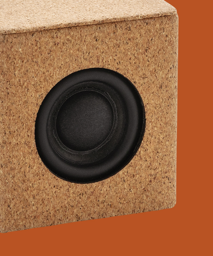 - Haut-parleur sans fil 3W en liège naturel. Batterie 500 mAh pour une autonomie de 4 heures et un temps de charge de 2 heures. BT 5.0 pour une distance de connexion jusqu'à 10 mètres. Sans PVC