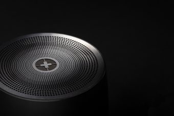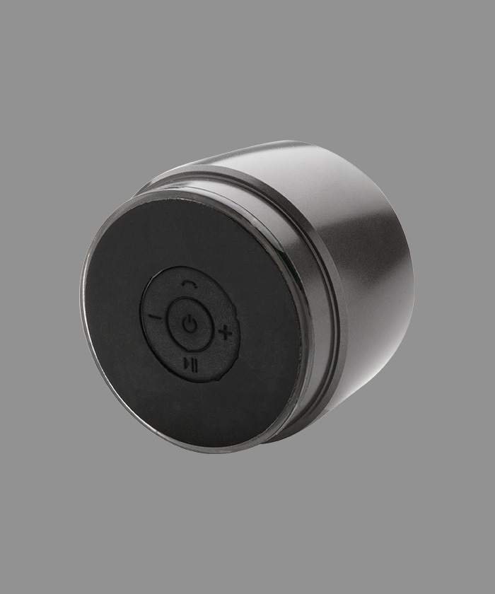 Haut-parleur 5W compact en acier inoxydable. La partie inférieure de l'enceinte possède un haut-parleur ‘’subwoofer’’ pour améliorer la performance des basses