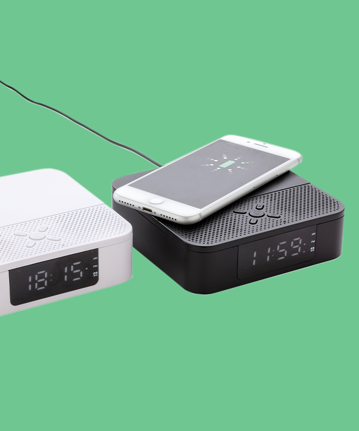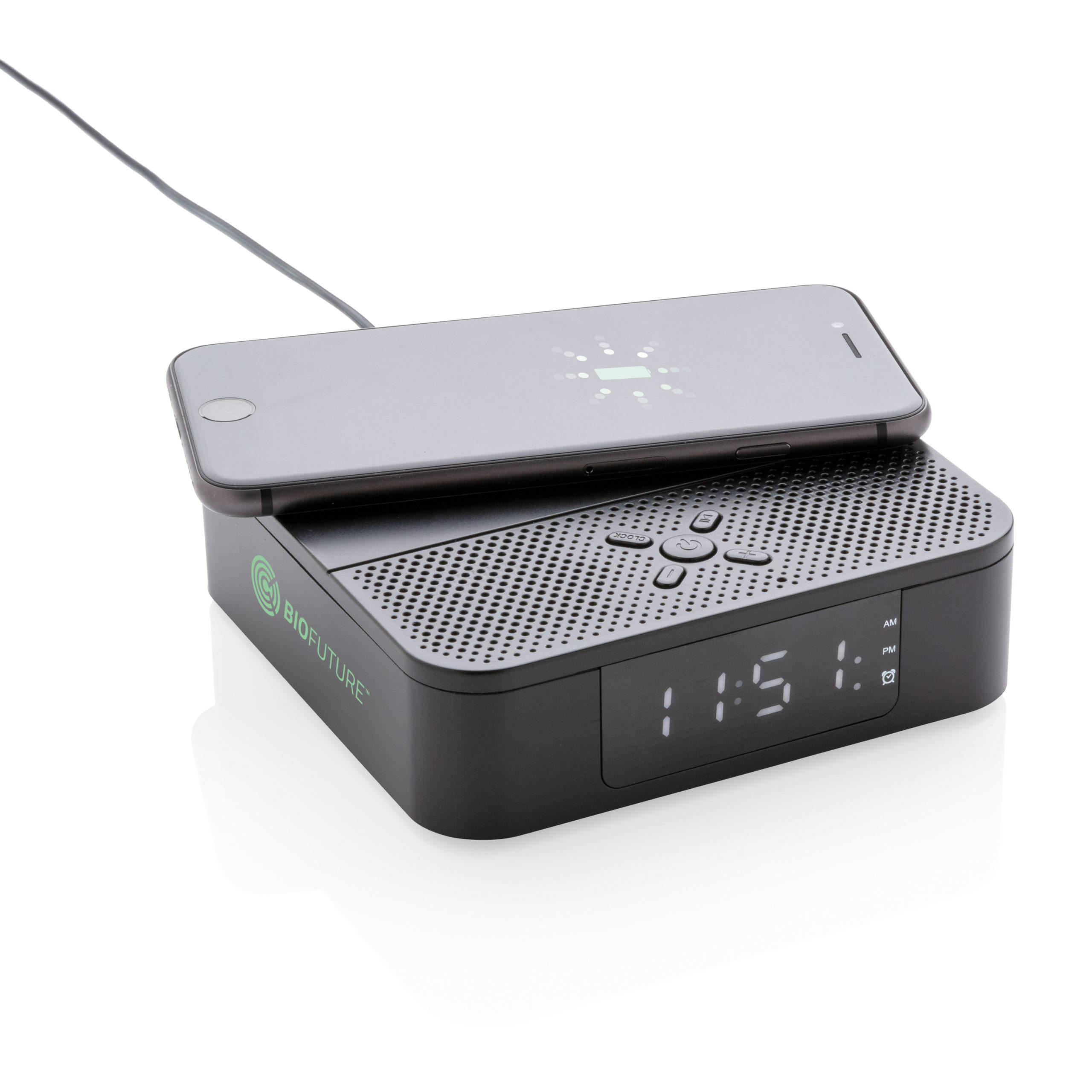 Haut-parleur 2x3W en ABS avec chargeur à induction 5W et fonction réveil