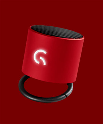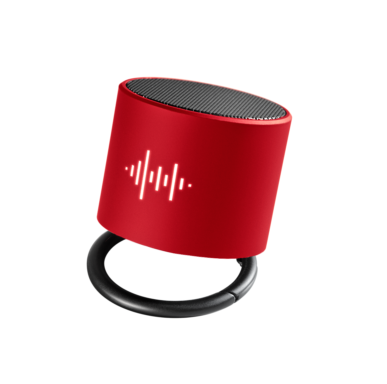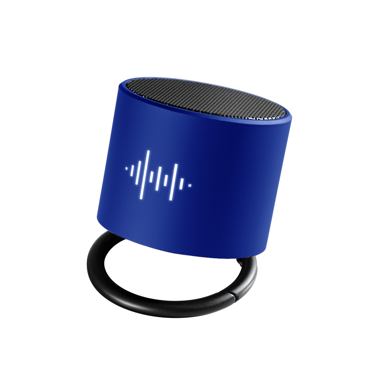 - Enceinte sans fil 3 W avec finition rubber et logo lumineux. L'enceinte possède une double sortie de son conférant une qualité d'écoute inégalée pour une enceinte de cette taille. Deux enceintes peuvent être couplées et mises en stéréo. Fonction conférence téléphonique avec micro intégré. Le socle est un mousqueton inclinable permettant d'orienter l'enceinte dans la direction souhaitée