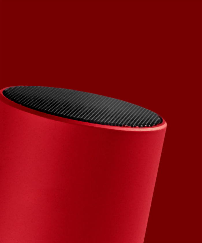L'enceinte possède une double sortie de son conférant une qualité d'écoute inégalée pour une enceinte de cette taille. Deux enceintes peuvent être couplées et mises en stéréo