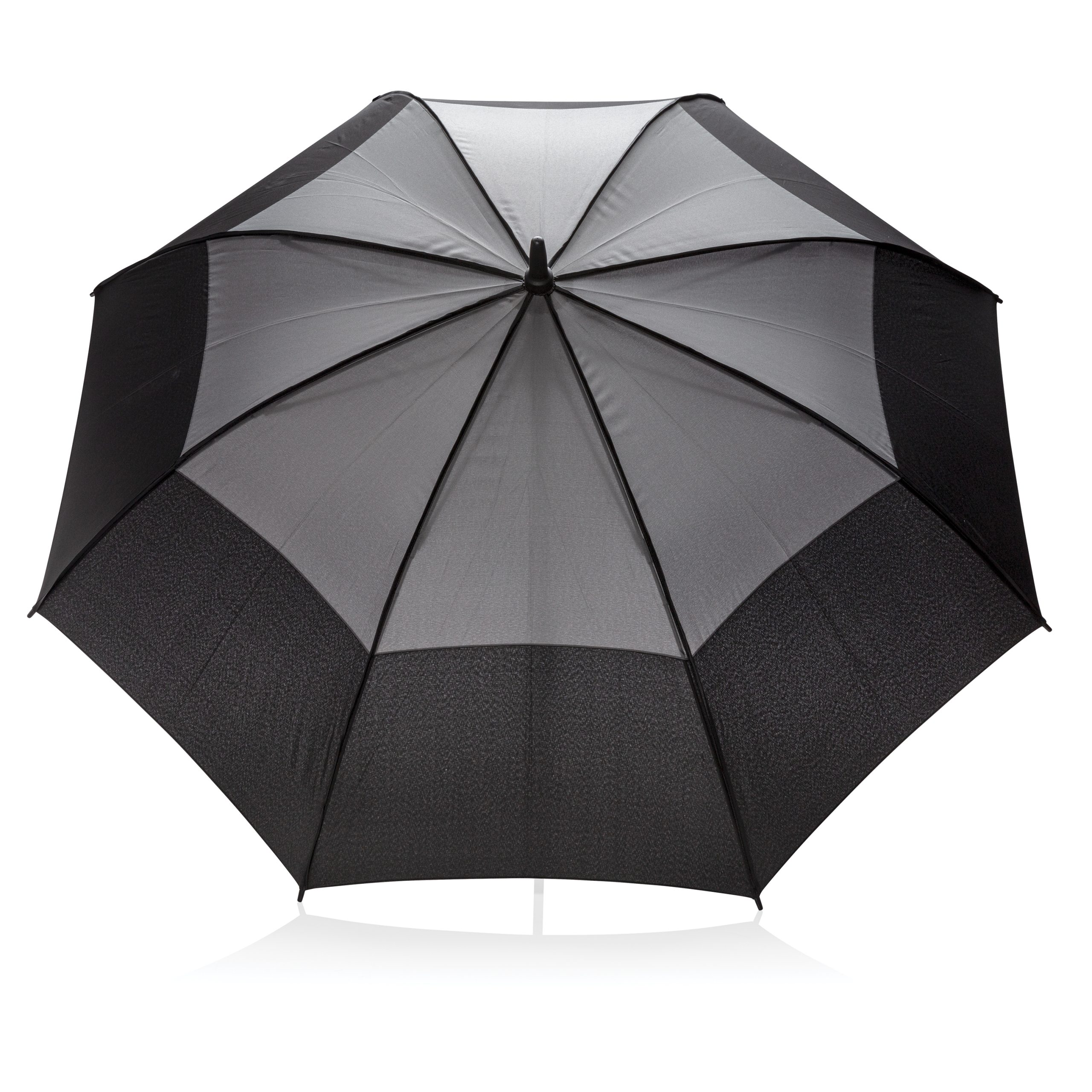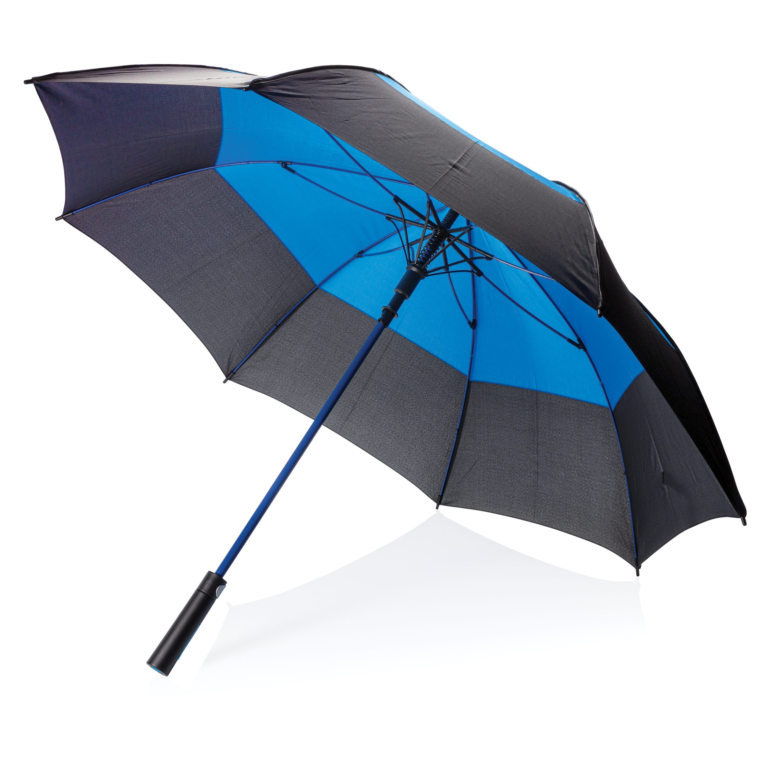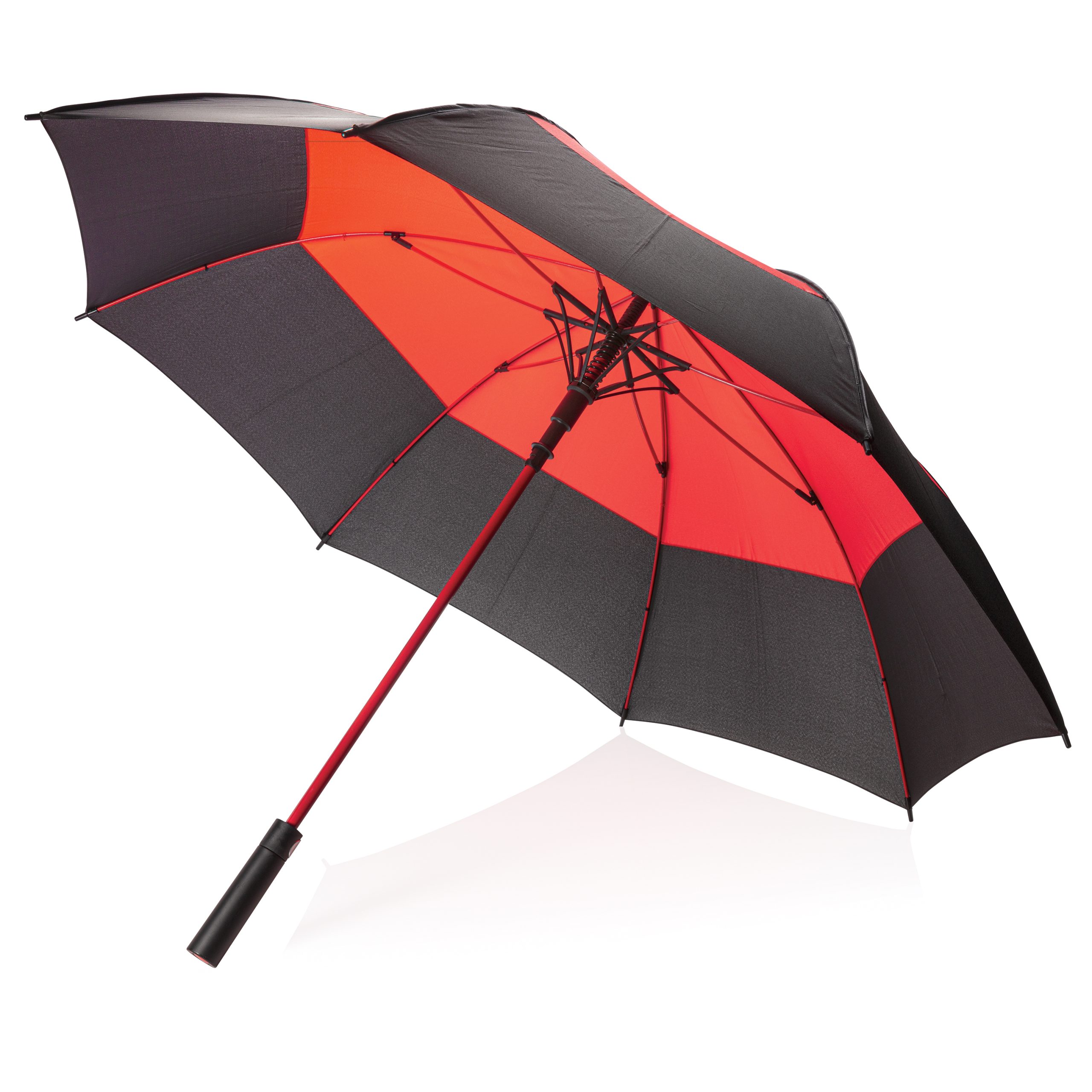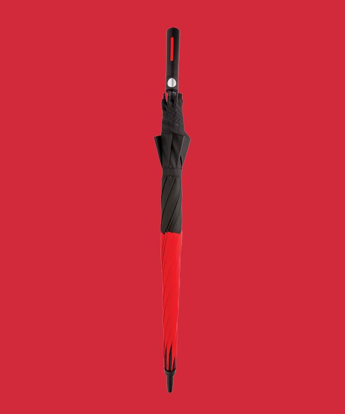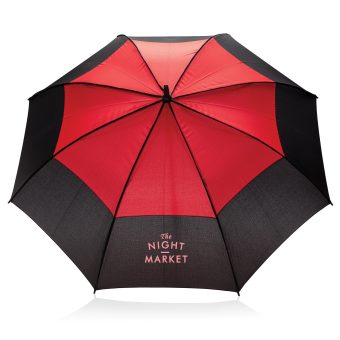 - Parapluie tempête 27'' en tissu pongé 190T avec système d'ouverture automatique. Système coupe-vent. Avec poignée droite et baleines en fibre de verre