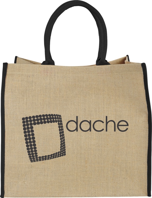 Grand sac shopping en jute, compartiment principal ouvert avec système de fermeture velcro. Anses de 17 cm de hauteur