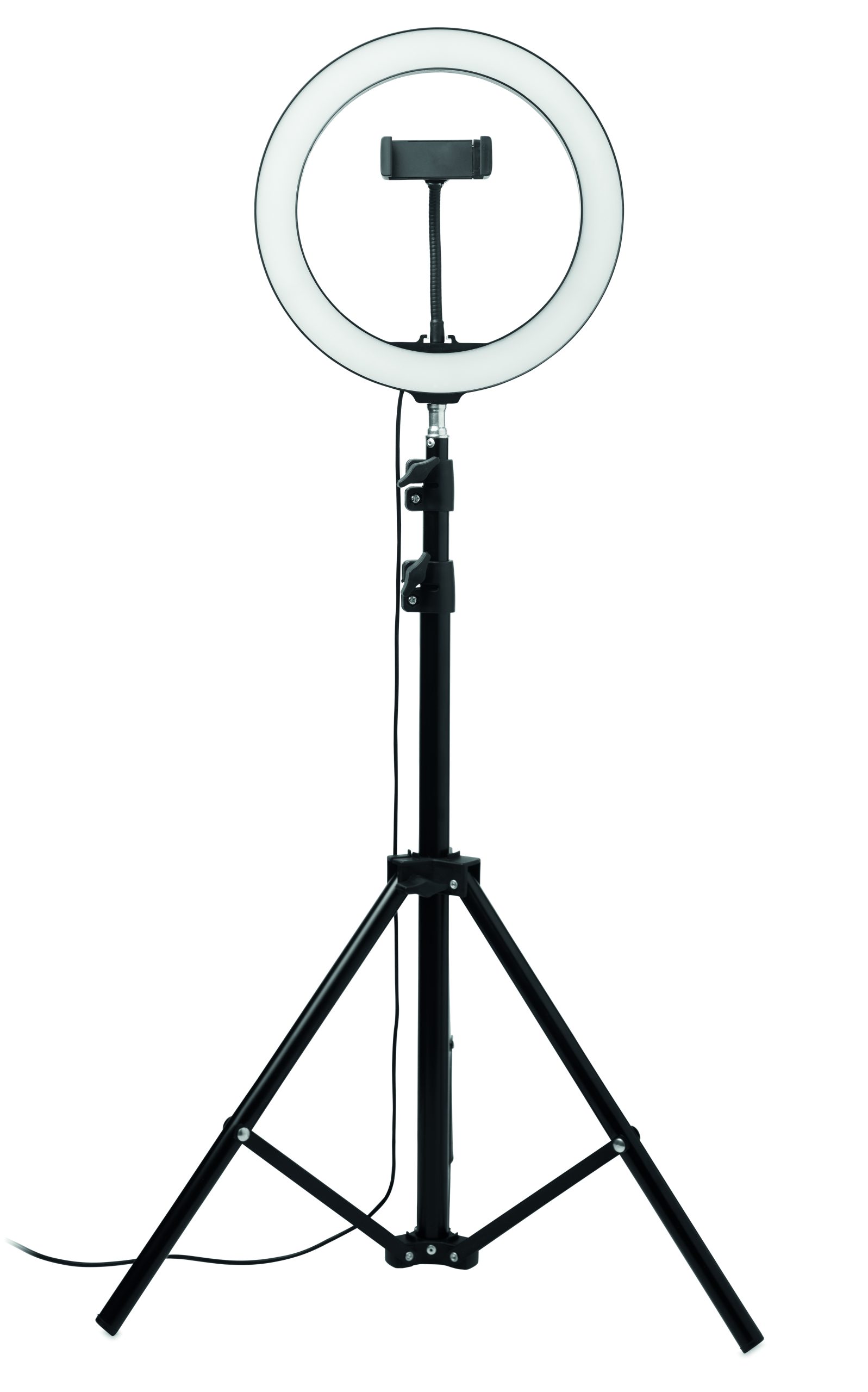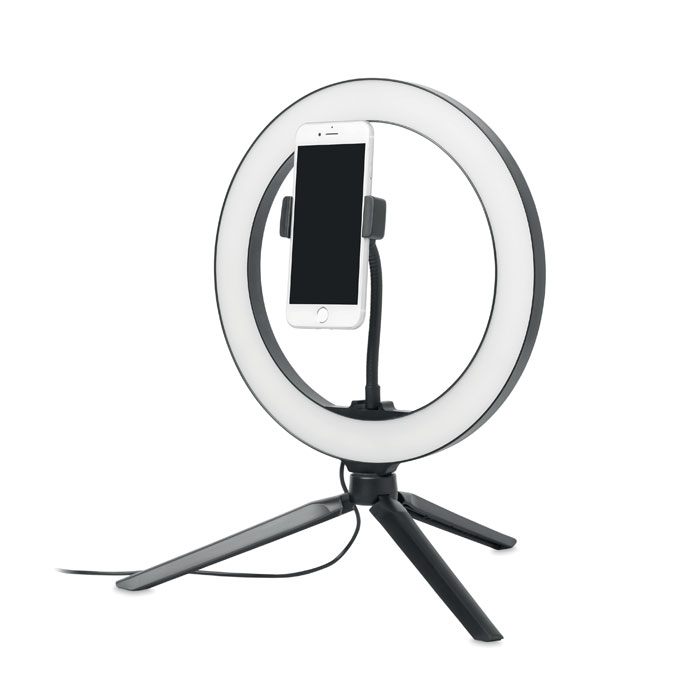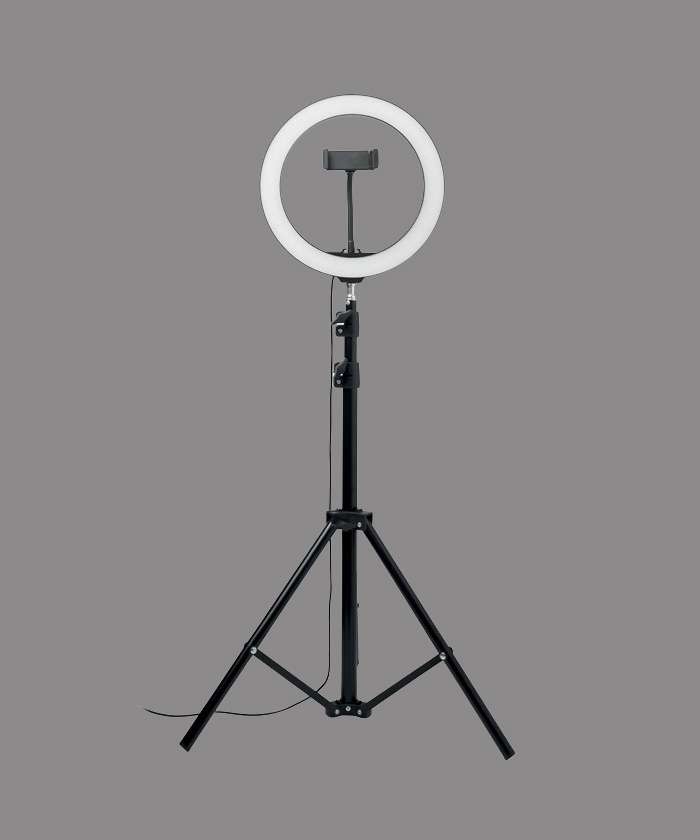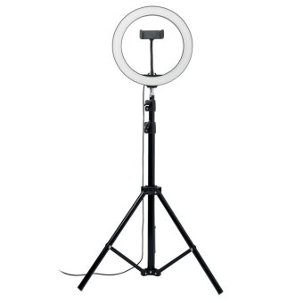 - Lampe annulaire LED de 26 cm avec support pour trépied et support pour téléphone. Si vous êtes un créateur de contenu ou si vous faites régulièrement des streams ou des diffusions, avoir un bon éclairage pour votre public est une nécessité absolue. La lumière circulaire projette un motif lumineux uniforme sur votre visage ou votre sujet, sans aucune ombre dure. Cette lumière circulaire est donc idéale pour les Tik-tok®, les live-streamings, les diffusions et les photos Instagram. Un obturateur filaire est inclus pour une parfaite opportunité de selfie. La lampe comporte 120 LED blanc chaud avec un réglage de 10 niveaux de luminosité pour une exposition lumineuse parfaite. Réglez le support du trépied à la hauteur préférée, ajoutez votre smartphone au support et vous êtes prêt à aller en direct