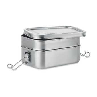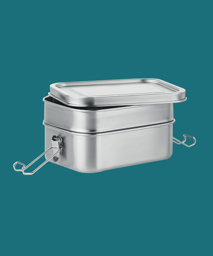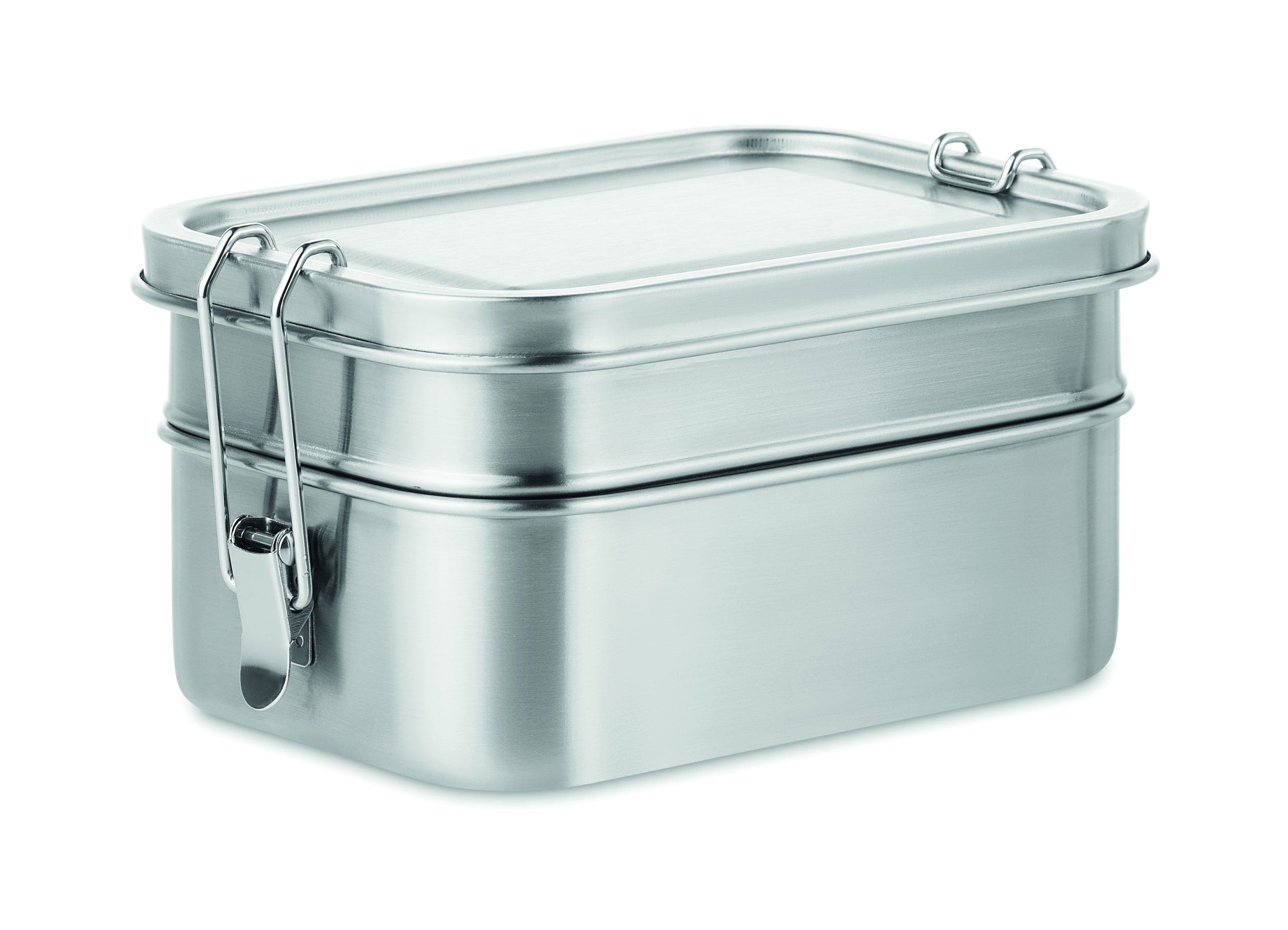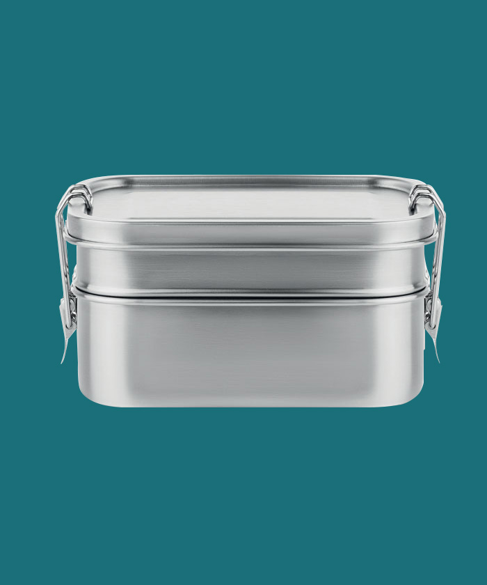 - Lunchbox en acier inoxydable à deux compartiments, ce qui vous permet d'avoir deux types de nourriture différents pour le déjeuner sans qu'ils soient mélangés. La boîte à lunch est munie de solides boucles latérales qui la protègent des fuites. Avec une capacité totale de 1200 ml, vous pouvez emporter un déjeuner sain avec vous au travail. L'acier inoxydable de qualité alimentaire vous permettra de conserver la fraîcheur de vos aliments