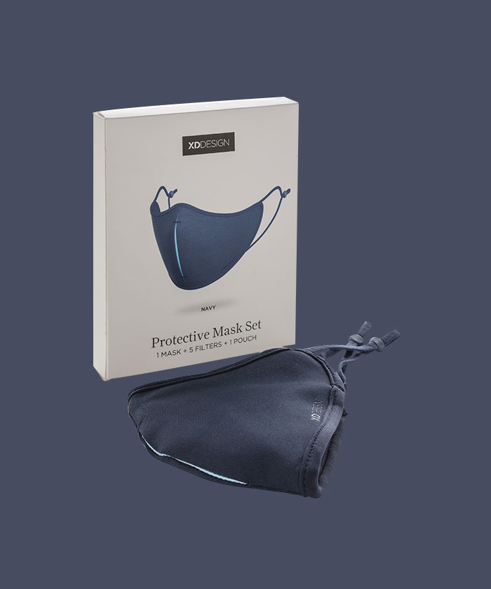 Masque facial XD DESIGN confortable de de conception légère à trois couches ; la couche frontale en polyester est traitée avec ViralOff®, une technologie qui élimine 99 % des virus en 2 heures. La couche intermédiaire contient un filtre unique en nano fibre Hyproof® testé en laboratoire. Ce filtre a une efficacité de filtrage de 95 %. La couche intérieure est en polyester. Avec une structure tridimensionnelle du menton et une arête nasale pour faciliter la respiration ce masque est très confortable et s’adapte à tous les visages. Cet ensemble comprend : 1 masque facial réutilisable et lavable, 5 filtres réutilisables, 1 pochette de rangement. Ce dispositif n'est pas un dispositif médical au sens du règlement UE / 2017/745 (masques chirurgicaux) ni un équipement de protection individuelle au sens du règlement UE / 2016/425 (masques filtrants de type FFP2). Modèle déposé®.