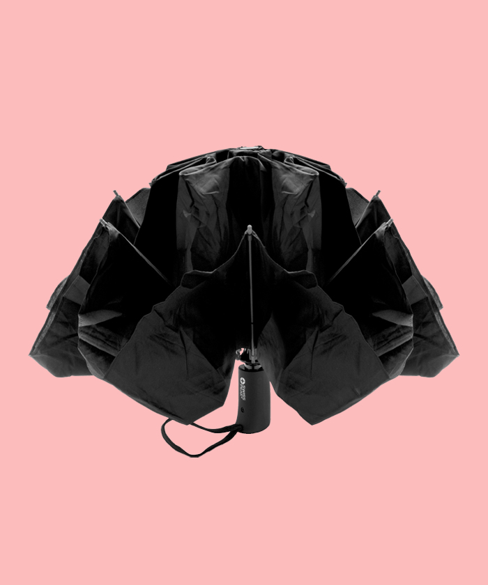 - Parapluie réversible 23’’en tissu pongé 190T avec système d'ouverture et fermeture automatique. Manche en acier chromé, baleines en fibre de verre et poignée en ABS noir avec bouton