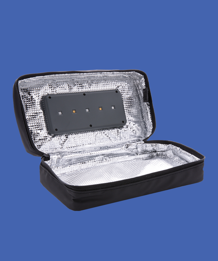 La conception garantit également que la lumière LED UV-C s'éteint automatiquement lorsque la poche de stérilisation est verrouillée par la fermeture à glissière et la fermeture magnétique, afin que l'utilisateur ne soit pas exposé à la lumière UV-C