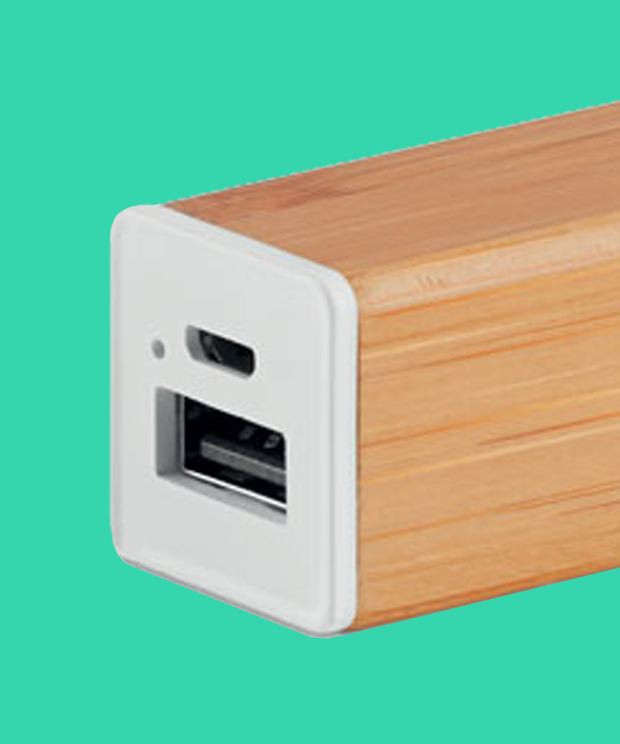 - Powerbank 2200 mAh dans un étui en bambou. Convient aux smartphones, sortie DC5V / 1A actuelle. Comprend un voyant et un câble USB avec prise micro USB. Connecteur de type C inclus. Le bambou est un produit naturel, et présente de légères variations de couleur, de décoration et de taille