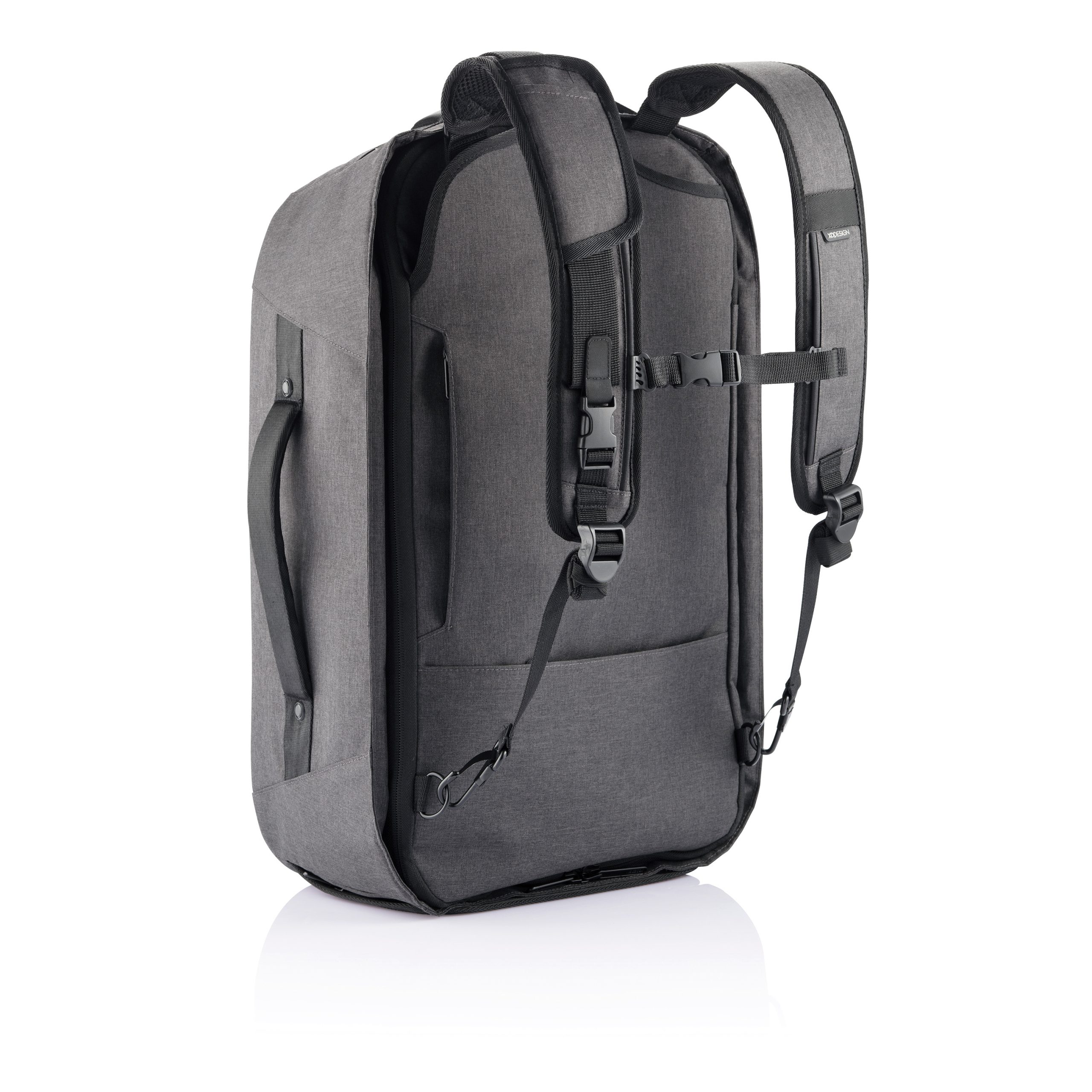 - Bobby Duffle est la solution la plus sûre et la plus durable pour les sacs de voyage antivol. Ce sac à dos est un sac de voyage de 30 litres approuvé pour les bagages de cabine. Le système polyvalent de sangles et de transport permet de passer facilement d'un sac à dos à un sac de sport. Il dispose d'un compartiment principal spacieux avec séparateurs intérieurs ainsi que d'un compartiment rembourré pour ordinateur 17". Les caractéristiques antivols emblématiques telles que : fermetures éclairs cachées et poches cachées anti-RFID, protection anti-lacérations et fermetures éclairs verrouillables, sont incluses. Equipé d'une poche imperméable pour ranger votre parapluie et d'un compartiment à chaussures sur le bas. Fabriqué à partir de matériaux rPET et du traceur AWARE™. L'utilisation de matériaux textiles recyclés authentiques et les déclarations d'impact sur la réduction de la consommation d'eau sont garanties, grâce à l'utilisation du traceur et de la blockchain AWARE. Modèle déposé