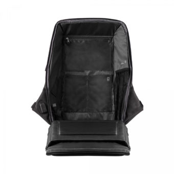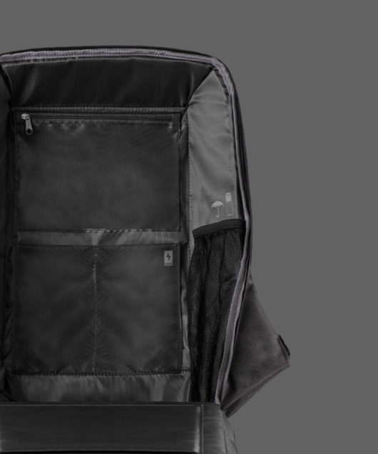 Fabriqué avec un matériau rPET de haute qualité et durable. Excellente résistance aux rayures. Sangle de maintien pratique. Compartiment intérieur pour bouteille d'eau. Antivol. Compartiment pour ordinateur portable jusqu'à 16 pouces. Trois coussinets dorsaux recouverts de filet de haute qualité