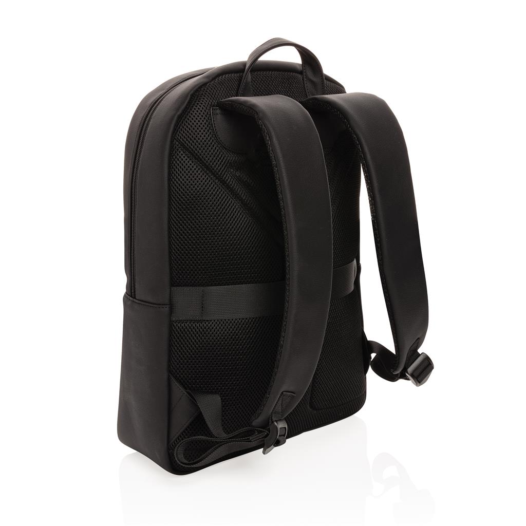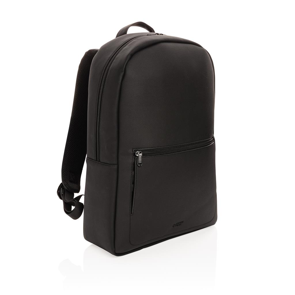 - Sac à dos en cuir végan. Fermeture zippée sur le dessus, poignée de transport sur le dessus, bretelles ajustables, poche extérieure et intérieure zippées, passant pour trolley au dos et compartiment pour ordinateur portable 15,6 pouces. Extérieur 100% PU, intérieur 100% polyester 210D. Sans PVC.