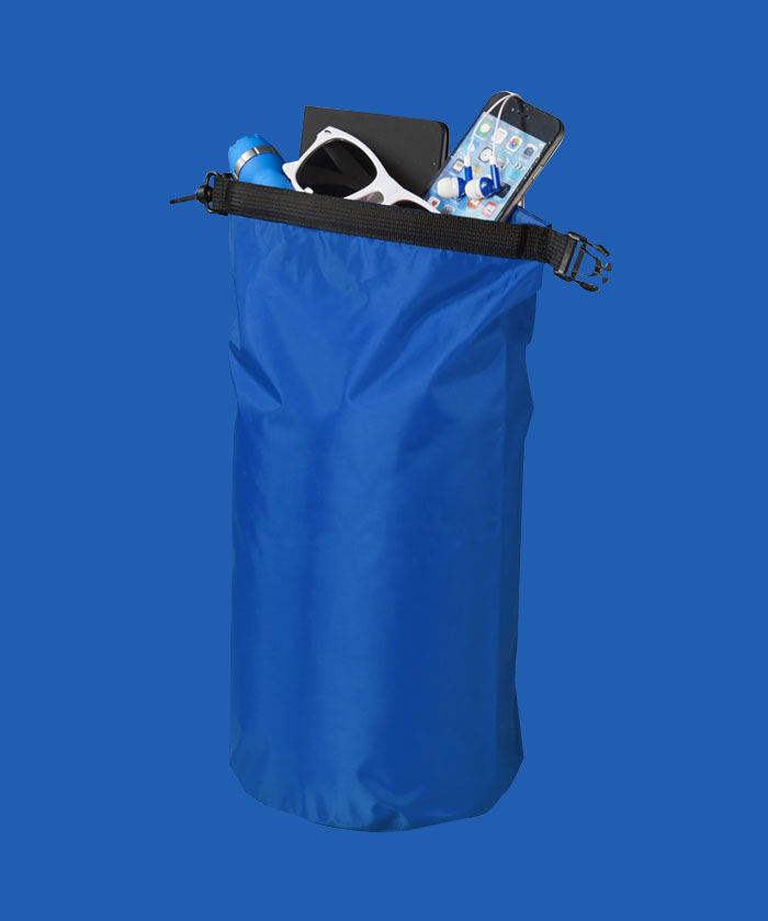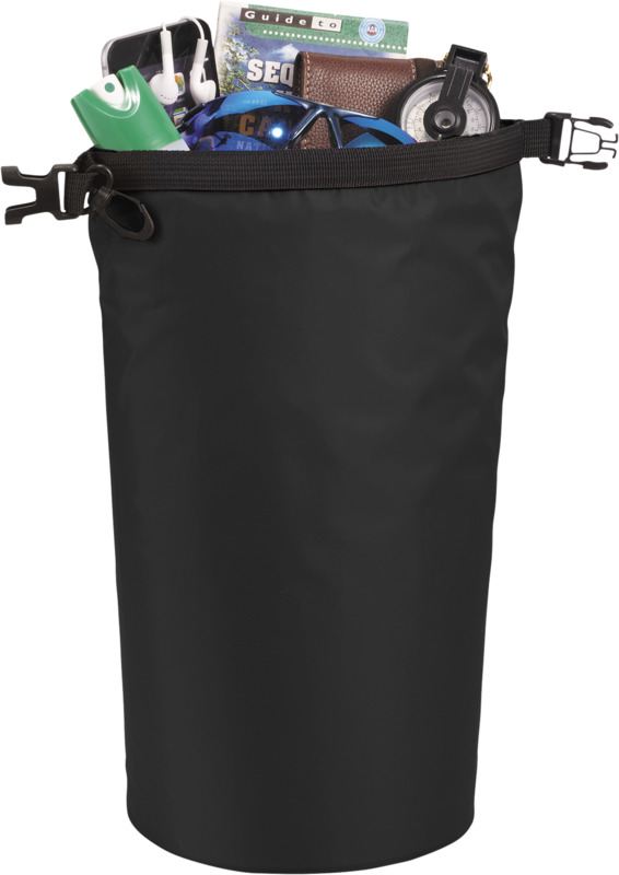 Un sac imperméable idéal pour le plein air. La fermeture à rabat avec boucle en plastique permet de garder les objets de valeur au sec et en sécurité. Peut être facilement attaché à un sac ou à une ceinture. Lorsque déplié et maintenu, la capacité du sac est de 10 litres. 190T Polyester