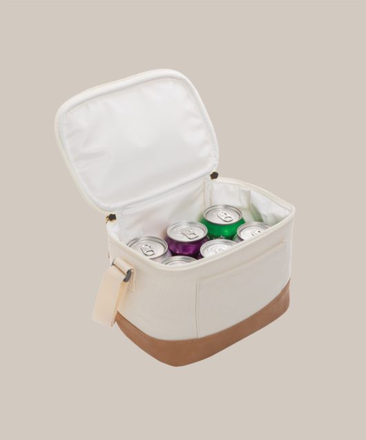 Sac en toile composé à 60% de coton recyclé et à 40% de polyester recyclé avec détails PU et doublure en PEVA. Le sac possède une poche avant ouverte et une poignée pour un transport facile. Le traceur AWARE™ prouve l'utilisation authentique de la toile recyclée. Permet de stocker jusqu'à 6 canettes. Chaque sac permet d'économiser 506,2 litres d'eau. 2% de chaque vente de la gamme Impact sera versée en don à Water.org.