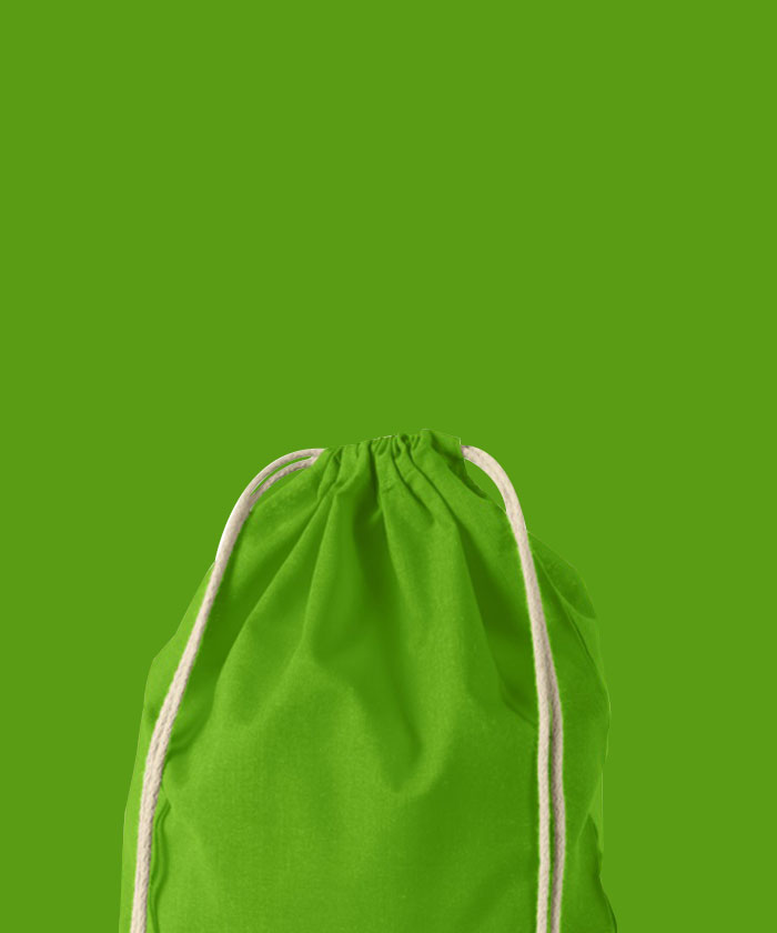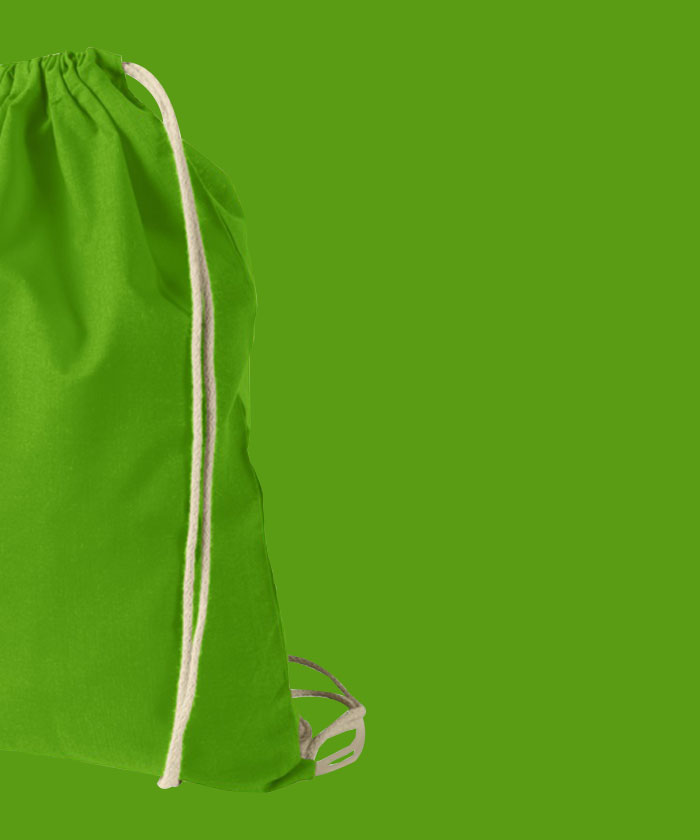- Grand compartiment principal ouvert avec fermeture à cordon en coton. Coton, 100 g/m2.