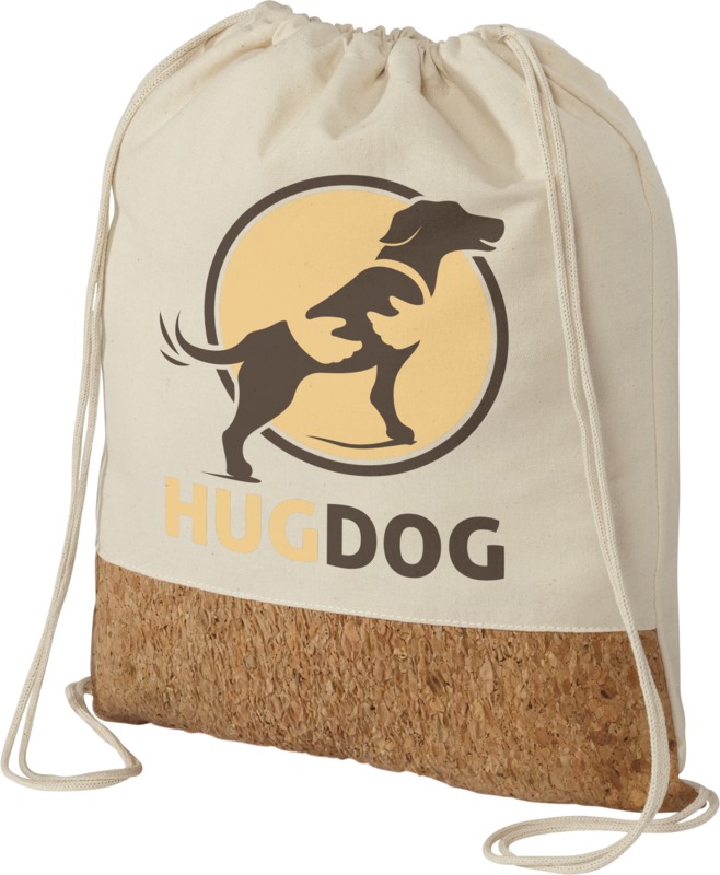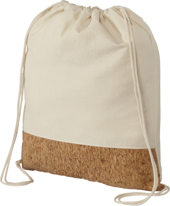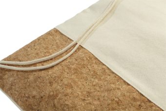 - Sac avec large compartiment et fermeture par cordon en coton. Le bas du sac est réalisé avec un panneau frontal en liège. Coton, 150 g/m2, Liège