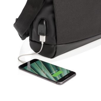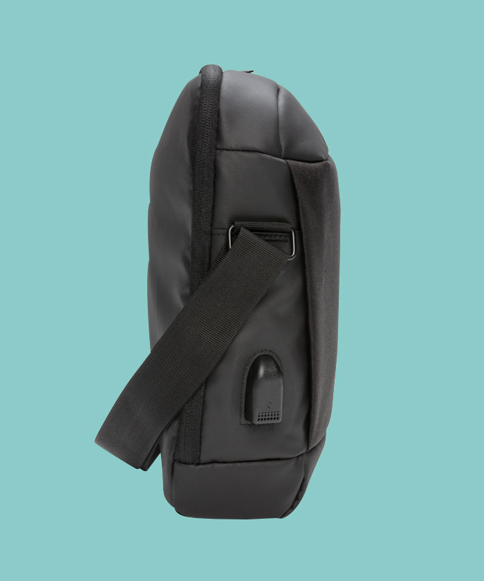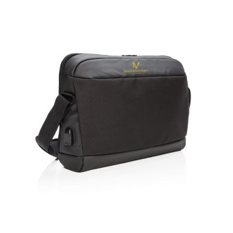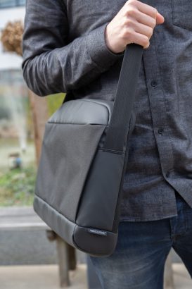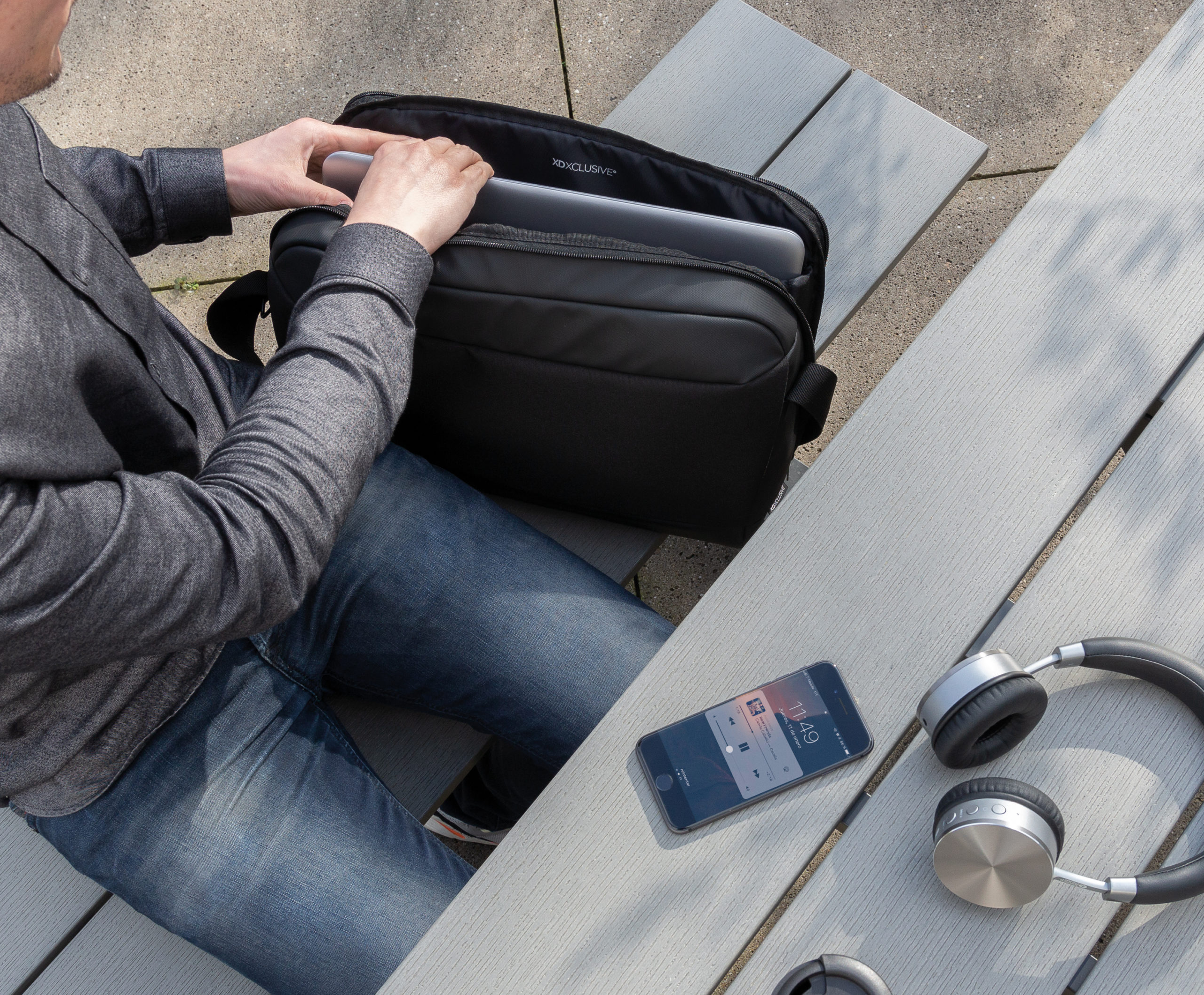 Sacoche pour ordinateur 15.6'' au design confortable avec de multiples rangements pour tablette et accessoires et poche anti-RFID pour votre portefeuille ou passeport. Branchez facilement votre powerbank au port USB intégré et chargez votre téléphone ou tablette. Sans PVC. Modèle déposé®