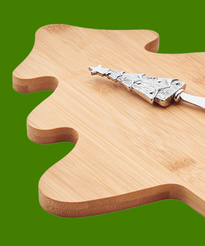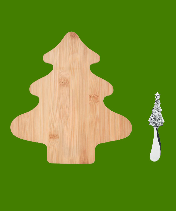 - Set à fromages en bambou. Planche en forme sapin et couteau à fromage en acier inoxydable. Le bambou est un produit naturel, il peut y avoir de légères variations de couleur et de taille par article