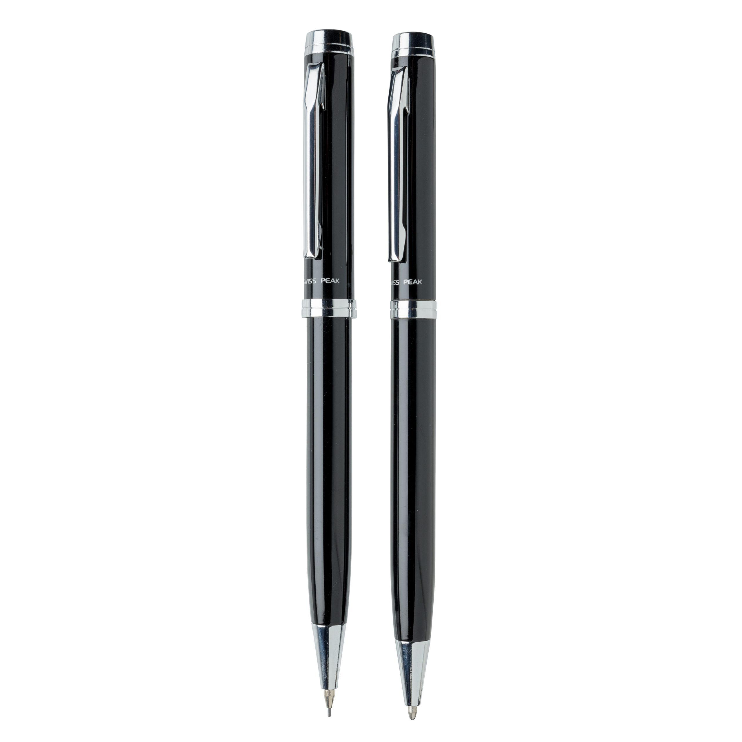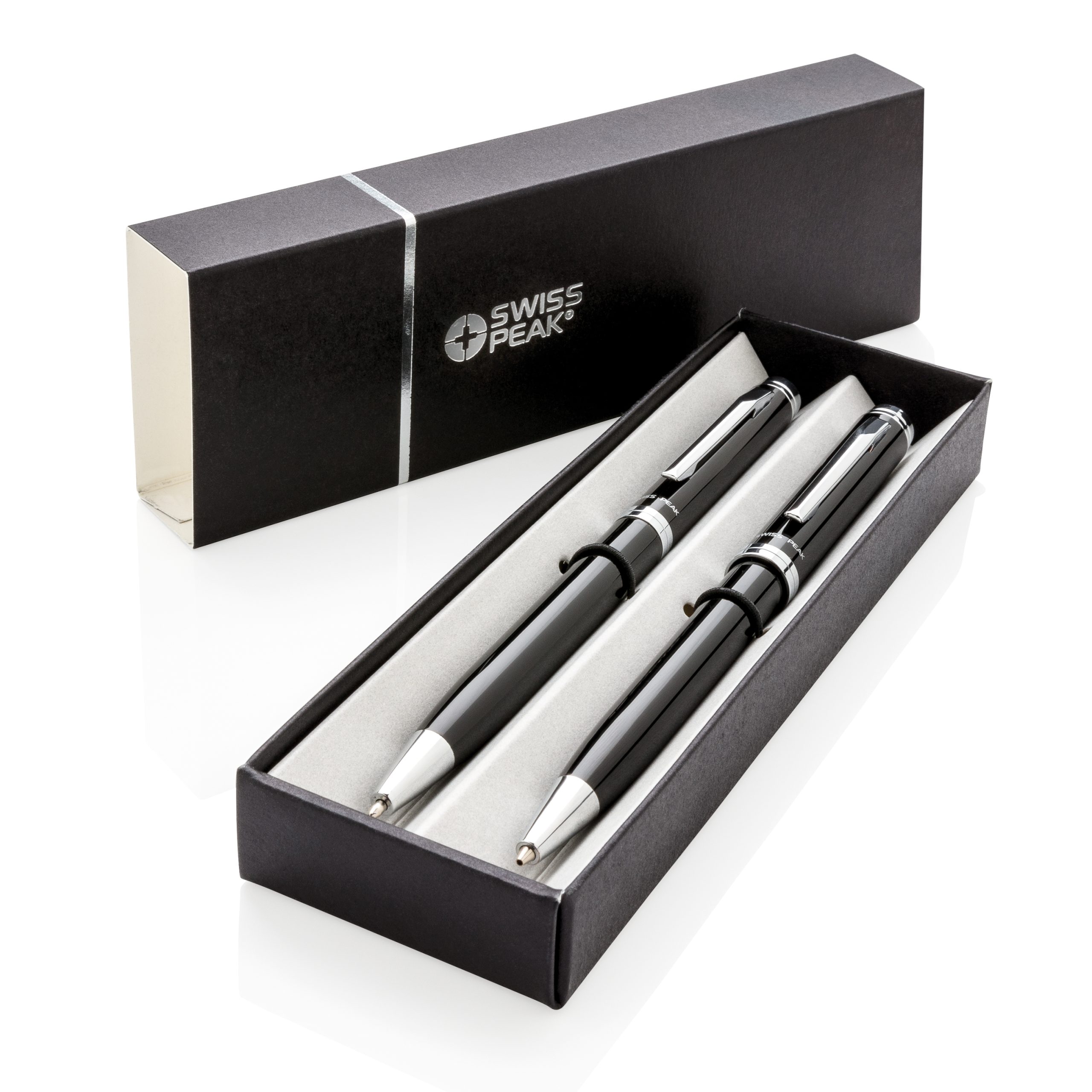 - Set stylos Swiss Peak Luzern avec un stylo à bille et un porte mines (3 mines de 0.7mm incluses)au design élégant et de qualité. Encre bleue Dokumental® de fabrication allemande pour +/- 1200m d’écriture et bille en carbure de tungstène assurant une écriture régulière. Livré dans une boite cadeau Swiss Peak
