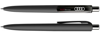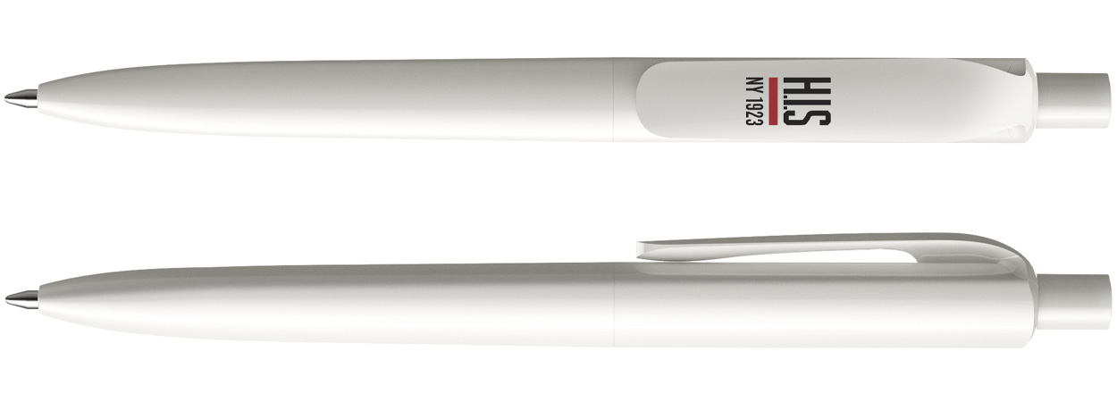 Stylo à bille à poussoir et corps en plastique (ABS), avec 30% de recyclat (standard) ou 100% (Regenerated). Version standard avec 30% de recyclat disponible dans différentes couleurs : sept mates, cinq polies et neuf veloutées Soft touch. Couleurs spéciales PMS dès 5 000 pièces. Mix des surfaces pour l'agrafe et le corps du stylo. Agrafe disponible en quatorze couleurs transparentes et en deux couleurs polies.